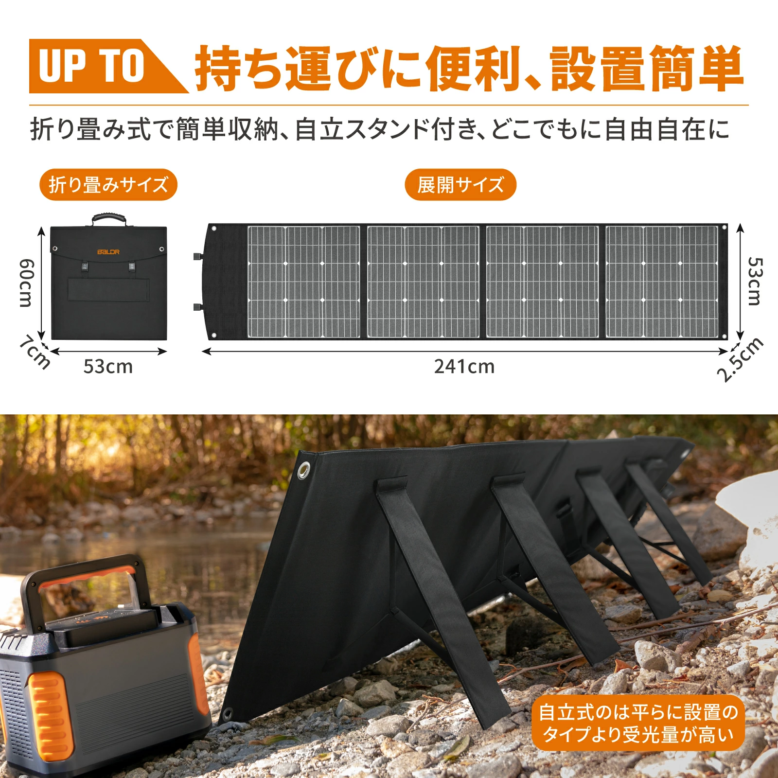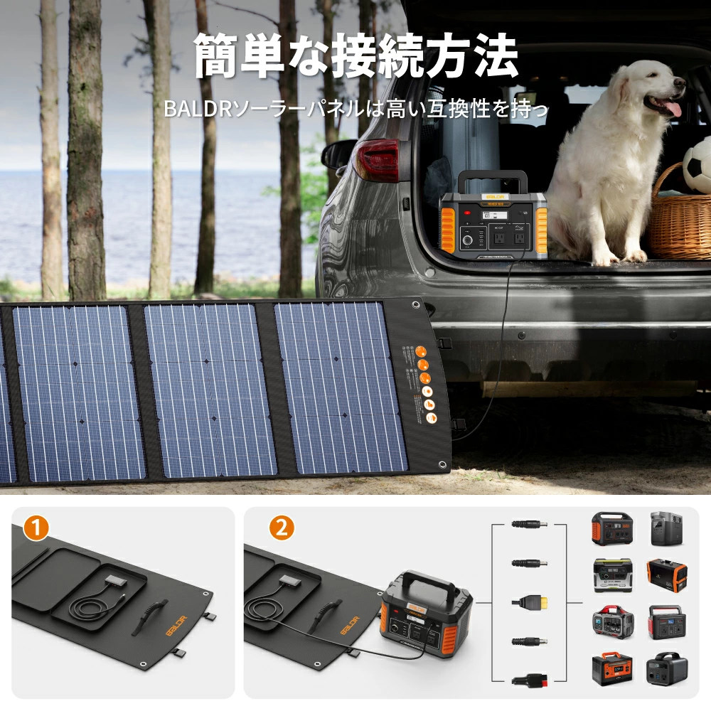ACコンセント、ソーラーパネル、ジェネレーター 3つの充電方法が備え、どんな場所でもポータブル電源への充電が可能です。ソーラーパネルから高速充電の場合は、MPPT(最大電力点追従制御)方式を採用したため、異なる気象条件下で太陽電池から最大の電力を取り出します。蓄電池の充電にはできるだけソーラーパネル(BALDR 60Wソーラーパネルお勧め )を使用することをおすすめします。パススルー充電対応なので、電源に充電しながら給電も出来ます
