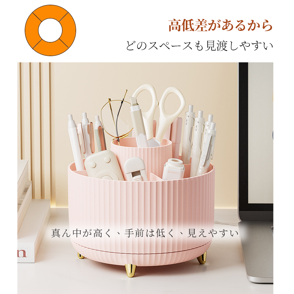 【回転式デザイン】360°回転式で、取り出しやすい。細かく仕切られている上部プレート、コスメやメイク道具など小物を整理して収納できる便利な卓上収納。