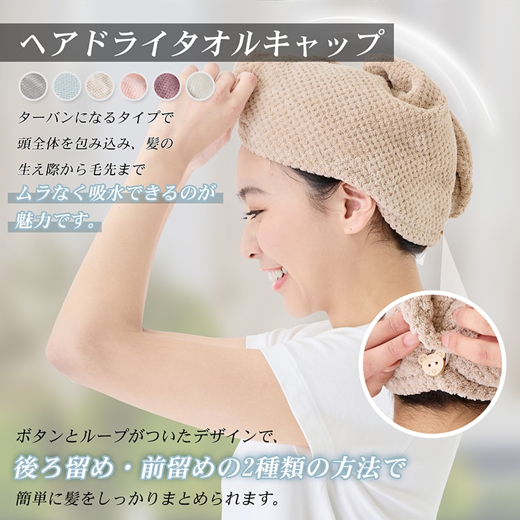 ■ターバンになるボタンタイプと定番のタオルタイプ!
