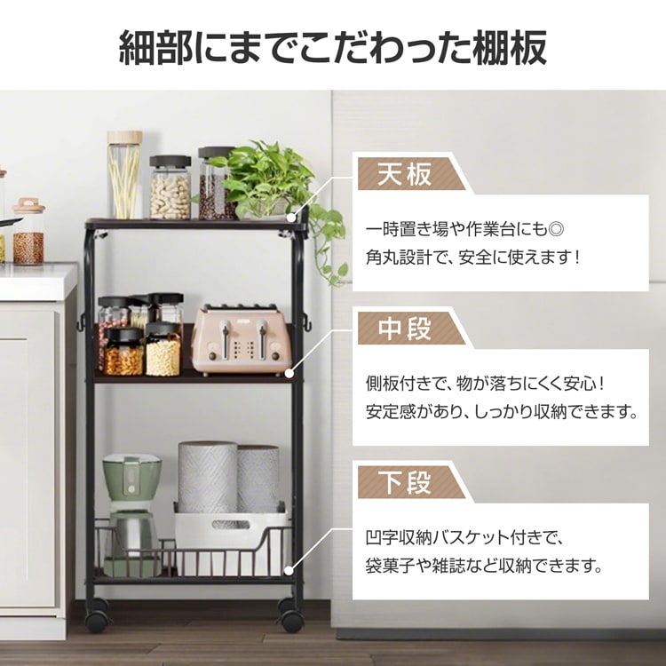 ■天板・中段は各10kg、下段は20kgまで収納可能で安心の耐荷重