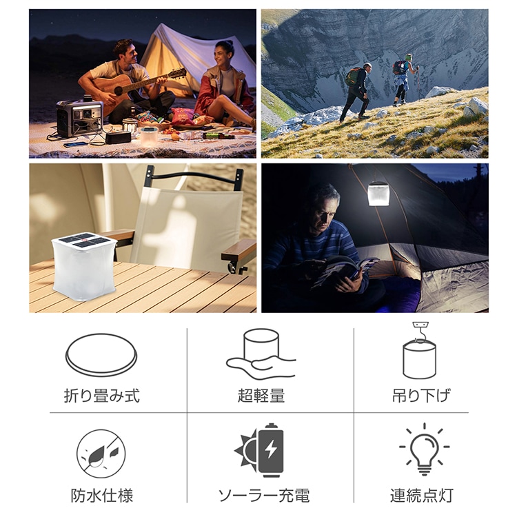 ■太陽光で充電できる折りたたみ式ソーラーランタンです。