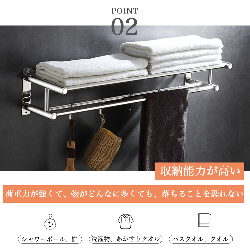 【外観】: 2層 のタオルレール、自由に動くフック、シンプルで実用的で。 接着剤で製品を貼り付けることもできますし、穴を開けて設置することもできます。 穴のない設置方法を使用して壁を効果的に損傷から保護します。