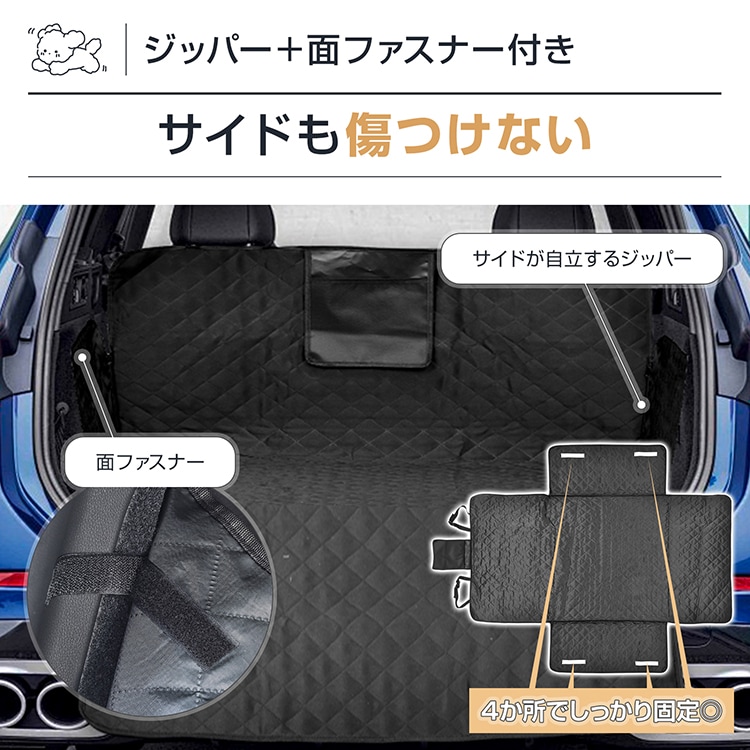 ■ジッパーと面ファスナー付きで両サイドもカバー