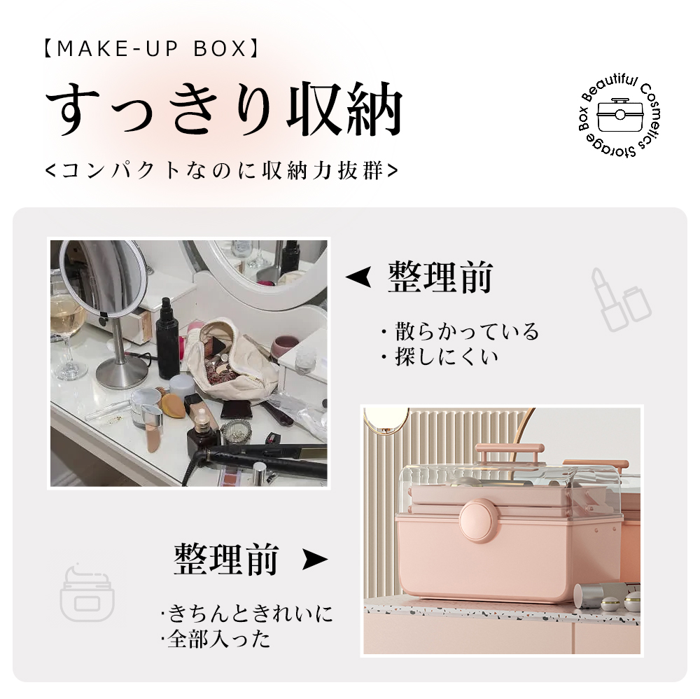 軽量で持ち運びが簡単:<どのような場所でも、コスメアイテムをしっかり収納できます。>