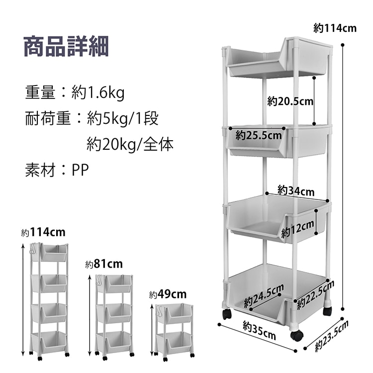 【耐荷重】:(約)5kg/1段・(約)20kg/全体