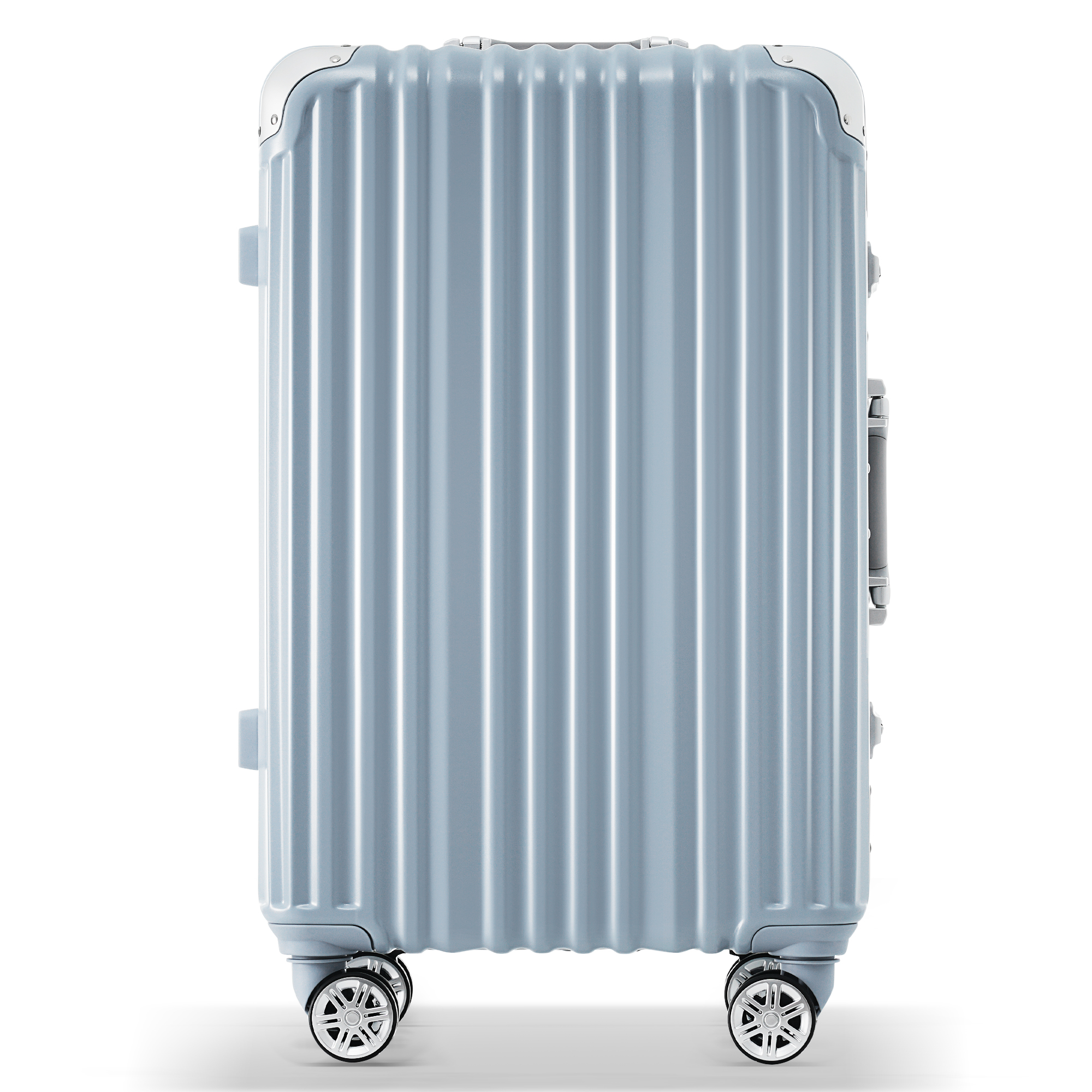 POINT 7.【アルミ製で、多段階調整可能ハンドル】 両方とも縦の凹溝設計を採用しており、箱体に上下の力学に支えられ、衝撃的なストレスを大幅に減らし、ハンドルの断絶を防ぐ。