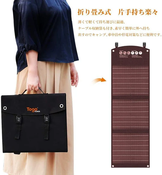 ソーラー充電器として、USB出力端子最大3Aの高出力です。 DCポート(18V/5.5A)、TYPE-C(PD45W)ポート、USB(QC3.0)ポートの3WAYに対応しています。Type-Cポートは5V4.5A/9V3A/12V3A/15V3Aまで、最大45Wの高出力でPD対応のMacbookなどのPCデバイスへ急速充電ができます。ポータブル電源のほか、スマホ、タブレット、ノートパソコンなど幅広い機器に対応し、同時充電も可能です。地震など災害時にも非常用電源としても大活躍です。