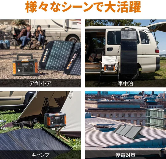 DC7909(本体搭載)、DC5521、DC5525、XT60、アンダーソンなど5種類のコネクタ付きが同梱されます、BALDRのポータブル電源だけではなく、市販のほとんどのポータブル電源へ充電できます。規則正しく並んでいる単結晶セル高い出力転換率が持ち、1500wの大容量ポータブル電源では約11時間でフル充電ができます。 ポータブル電源と組み合わせて地震など災害時に非常用電源としても大活躍です。(注:ポータブル電源の入力コネクタは付属の5種類以外であれば、直接充電不可となります、別の変換コネクタが必要となります。充電が可能かどうか確認できない場合は、ポータブル電源の販売店にアダプタの仕様をご確認ください)。2枚を組み合わせて並列に充電も可能で、充電時間を短縮できます!(具体的な充電時間は気象条件によるが、ポータブル電源の最大入力制限を確認する必要があります)