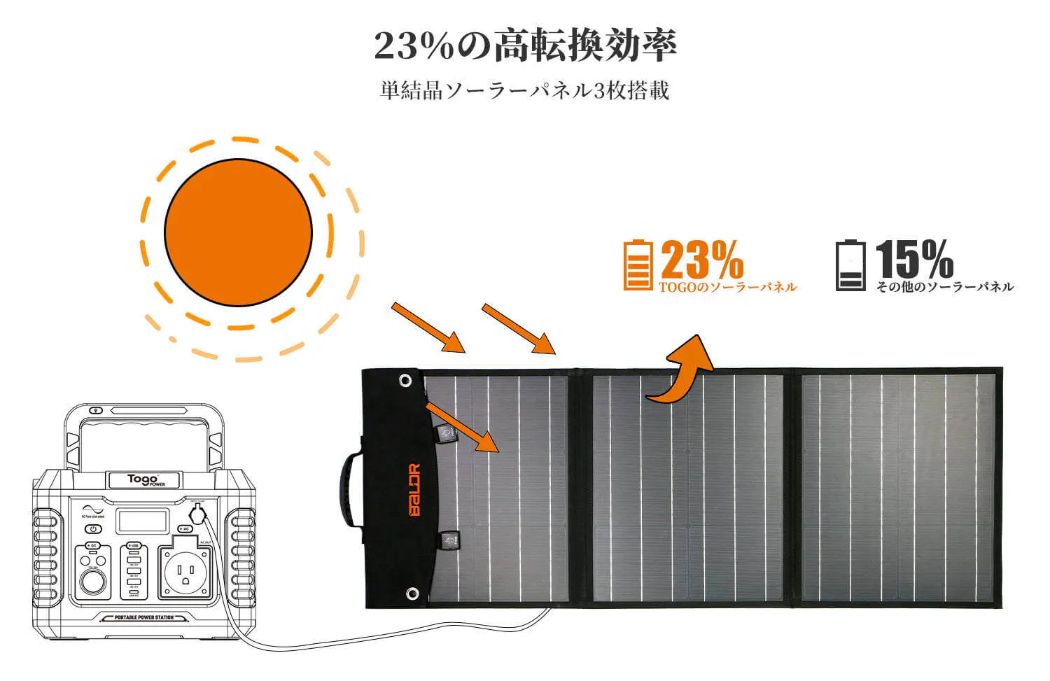 BALDR 60Wソーラーパネルは効率的な単結晶セルパネルで作られて、セルが規則正しく並んでいるため電力ロスが少なく、優れた光吸収技術を備えているため、より多くのエネルギーを生成して性能を向上させ、一般的な太陽光パネルの2〜3倍の耐久性を備えています。米国テスラの最新型光電転換技術を入れて、より安定した発電性能、高効率光電変換をを併せ持ちます。可視光透過率が高くETFE フイルムで、転換効率は一般的な太陽パネルより30%以上向上させて最大25%に達します、より高い出力電力を提供して充電時間をさらに短縮します。
