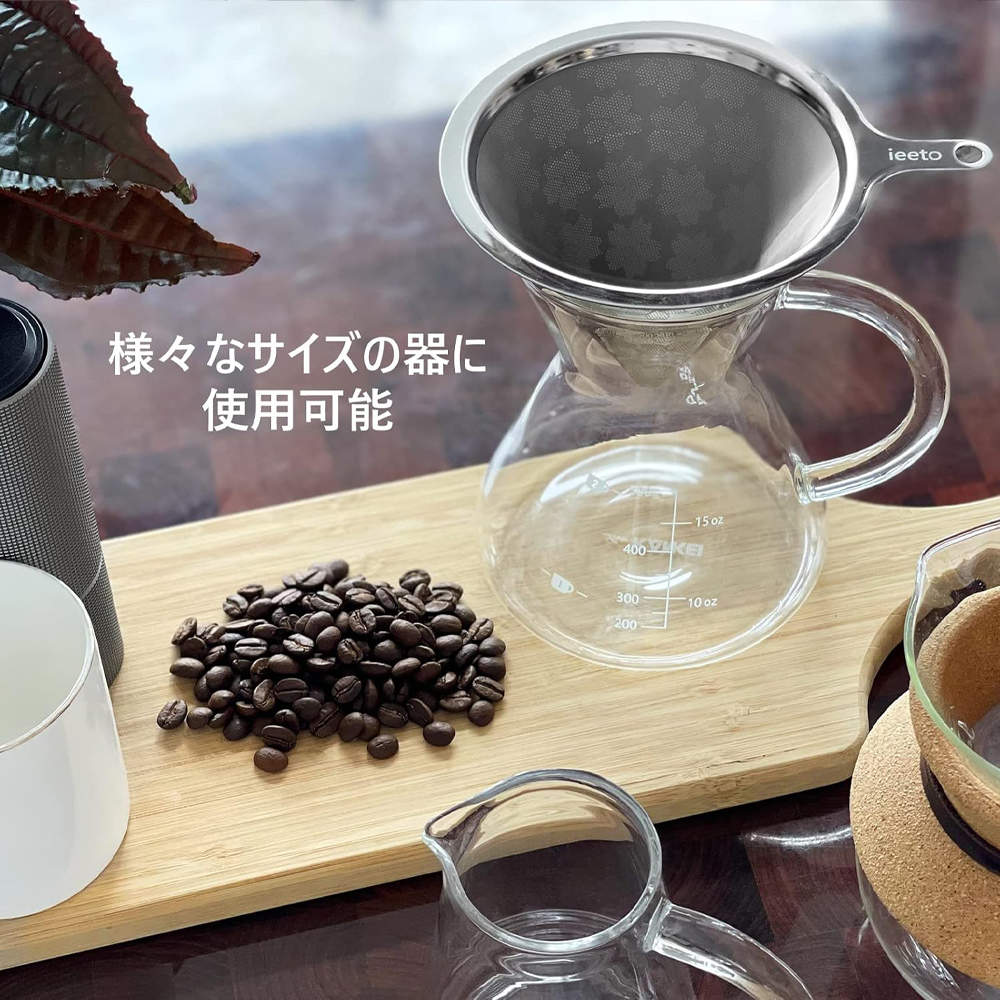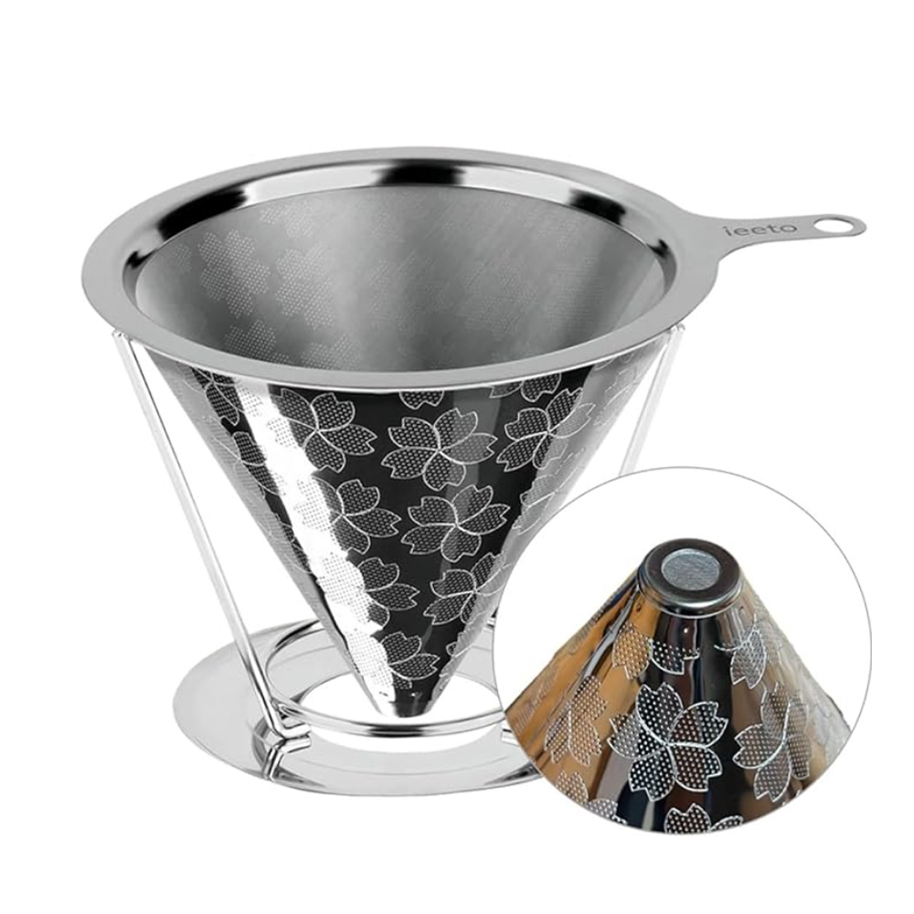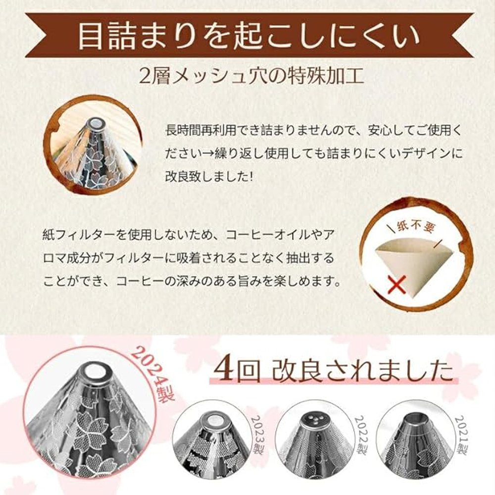 コーヒーフィルター 桜 目詰まりしにくい2層構造ドリッパー ペーパーレス ダブルメッシュ 円錐 紙不要 フック穴あり 日本人設計1~4杯用 coffeefilter1-4