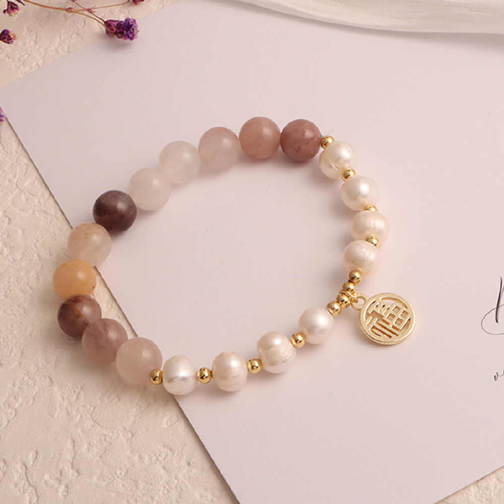 [開運 金運 仕事運 ] 天然石 ブレスレット 8MM ストロベリークォーツ 天然石ブレスレットパワース トーンブレスレッ スアクセサリー WRTA-BR-423