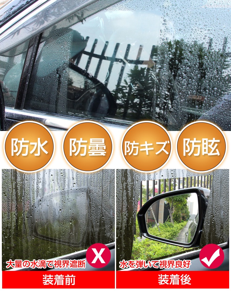 ■高撥水加工フィルムで雨をはじき、視界をしっかり確保!