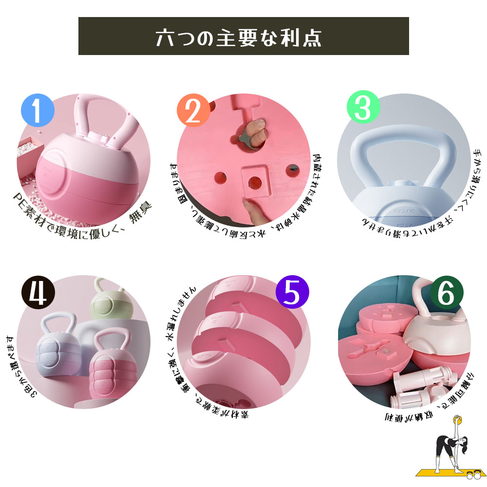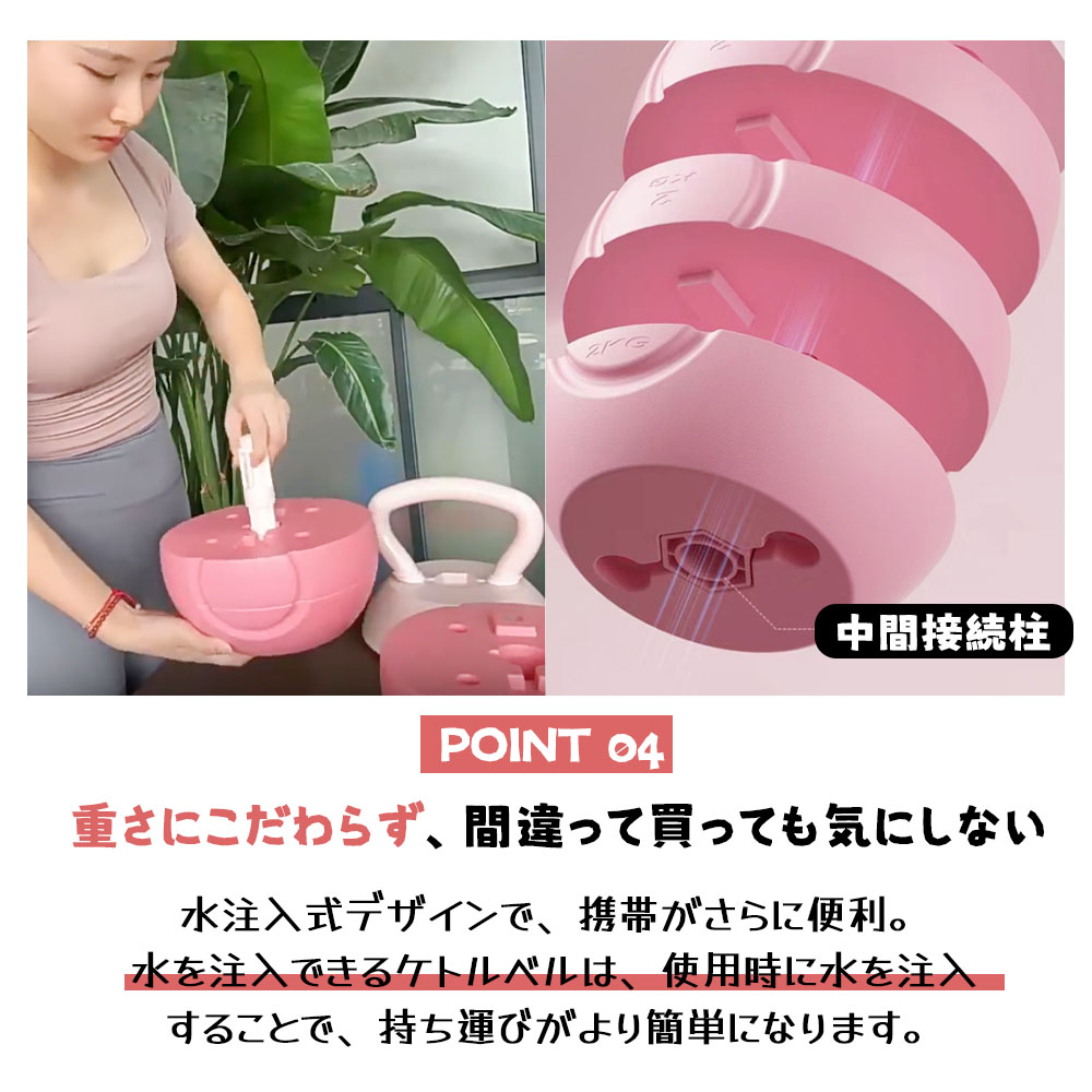 【可変式ケトルベル】調節可能なケトルベルは使いやすく、トレーニングレベルに合わせて重量を調節できます。水を入れることで重量を調整できるため、さまざまなフィットネスグレードのユーザーに適しており、優れたトレーニング体験を保証します。