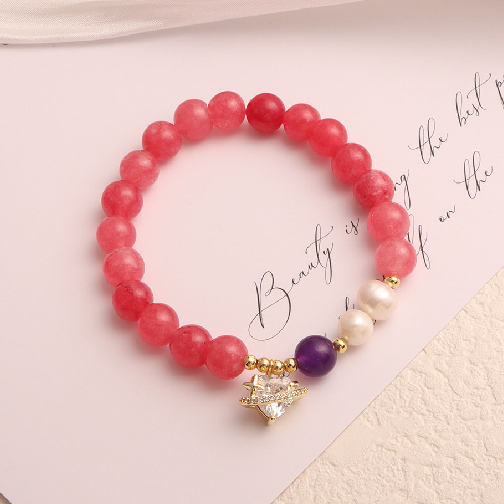 [開運 金運 仕事運 ] 天然石 ブレスレット 8MM ストロベリークォーツ 天然石ブレスレットパワース トーンブレスレッ スアクセサリー WRTA-BR-169-171