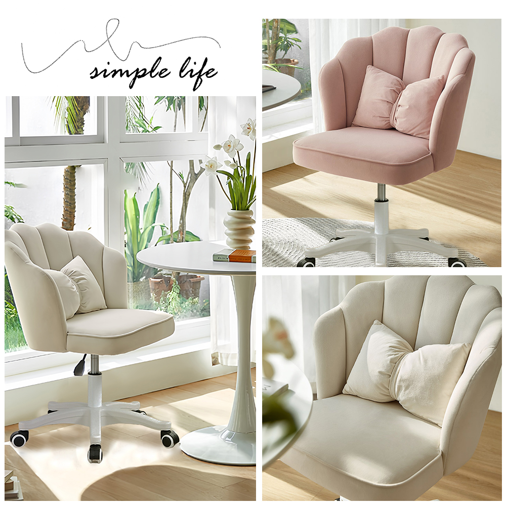 デスクチェアだけでなく、ダイニングチェア、メイク用チェアとしてもおすすめです。 独特の曲線が体にフィットして、疲れにくい。 ベルベット調で肌触りもよく、女性に人気のデザイン。 サロンや飲食店など、法人の方・ショップ用としてもご好評です。