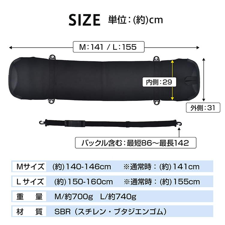 【伸縮サイズ】:M/(約)140cm~146cm・L/(約)150cm~160cm