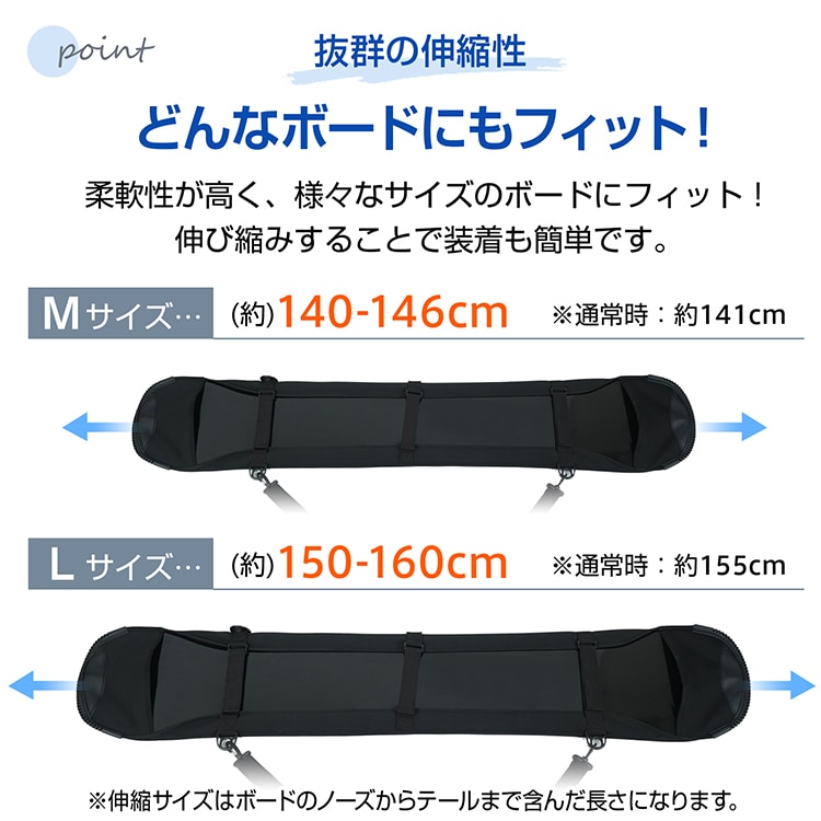 ■伸縮性のある素材で様々なサイズのボードにフィット!柔軟性が高く、装着も簡単です。