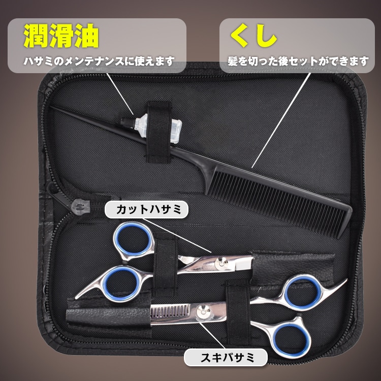 【商品内容】:カットハサミ/スキバサミ/くし/潤滑油/専用ケース