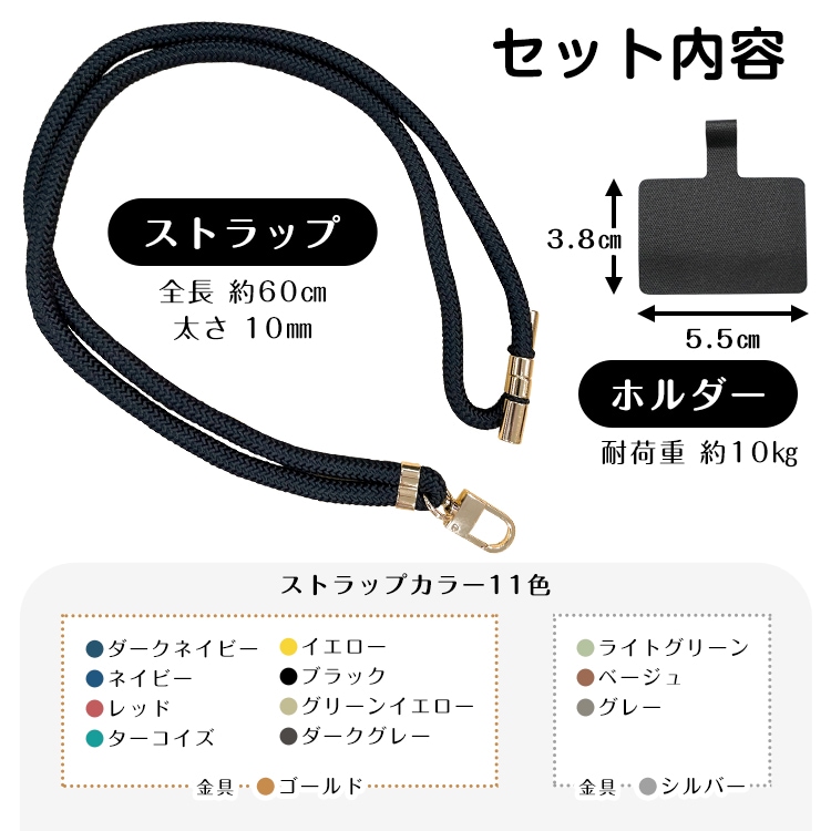 【サイズ】:ストラップ(約)全長60cm×太さ1cm/ホルダー(約)3.8cm×5.5cm