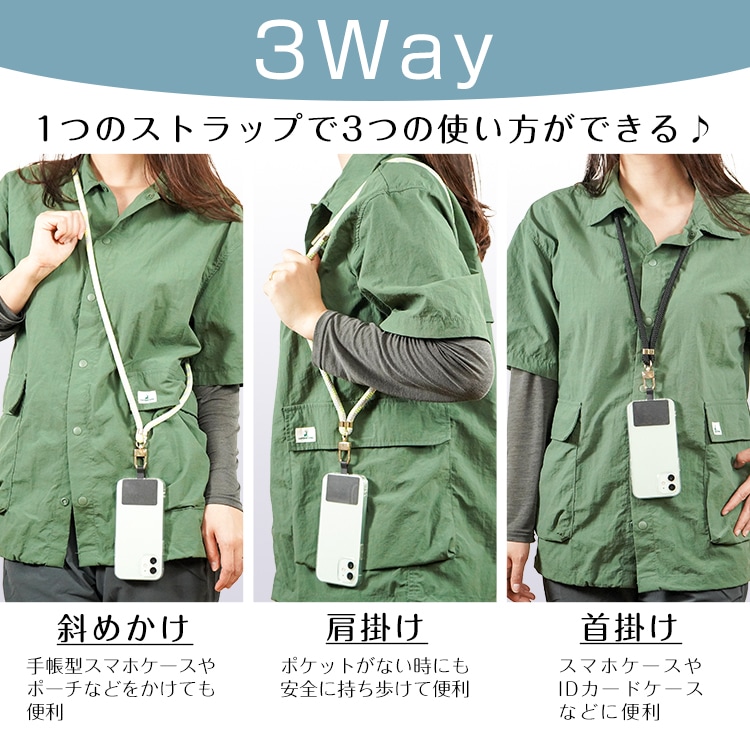 ■斜めかけ、肩掛け、首掛けの3つの使い方が可能!