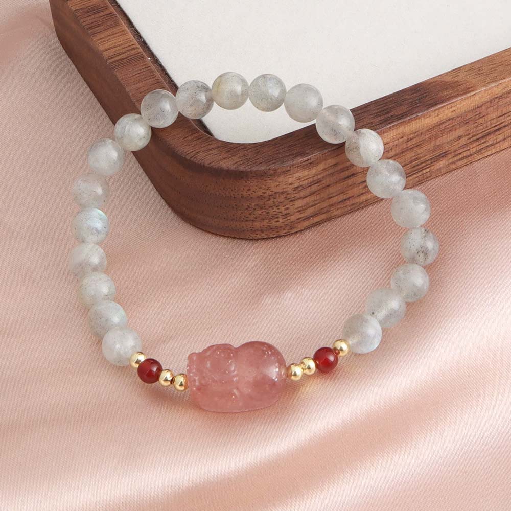 [開運 金運 仕事運 ] 天然石 ブレスレット 6MM ストロベリークォーツ 天然石ブレスレットパワース トーンブレスレッ スアクセサリー WRTA-BR-294/301