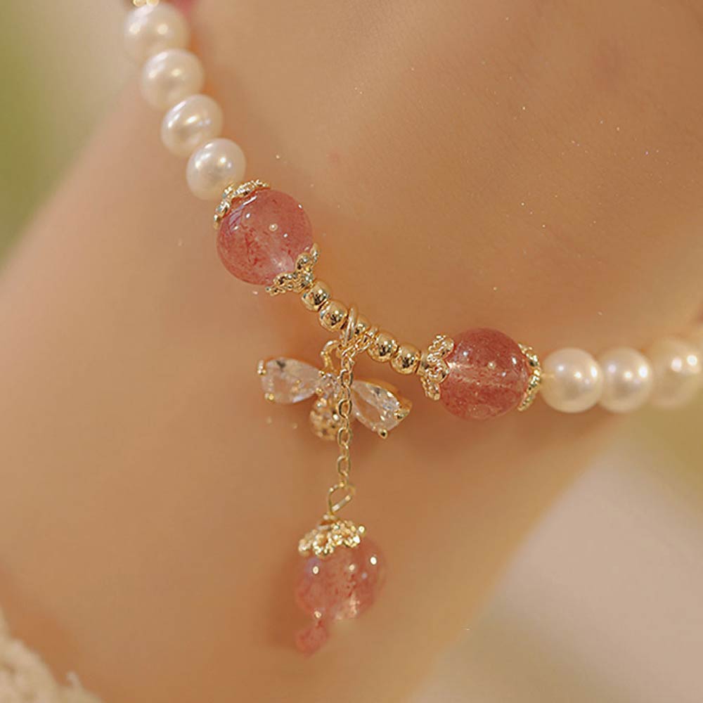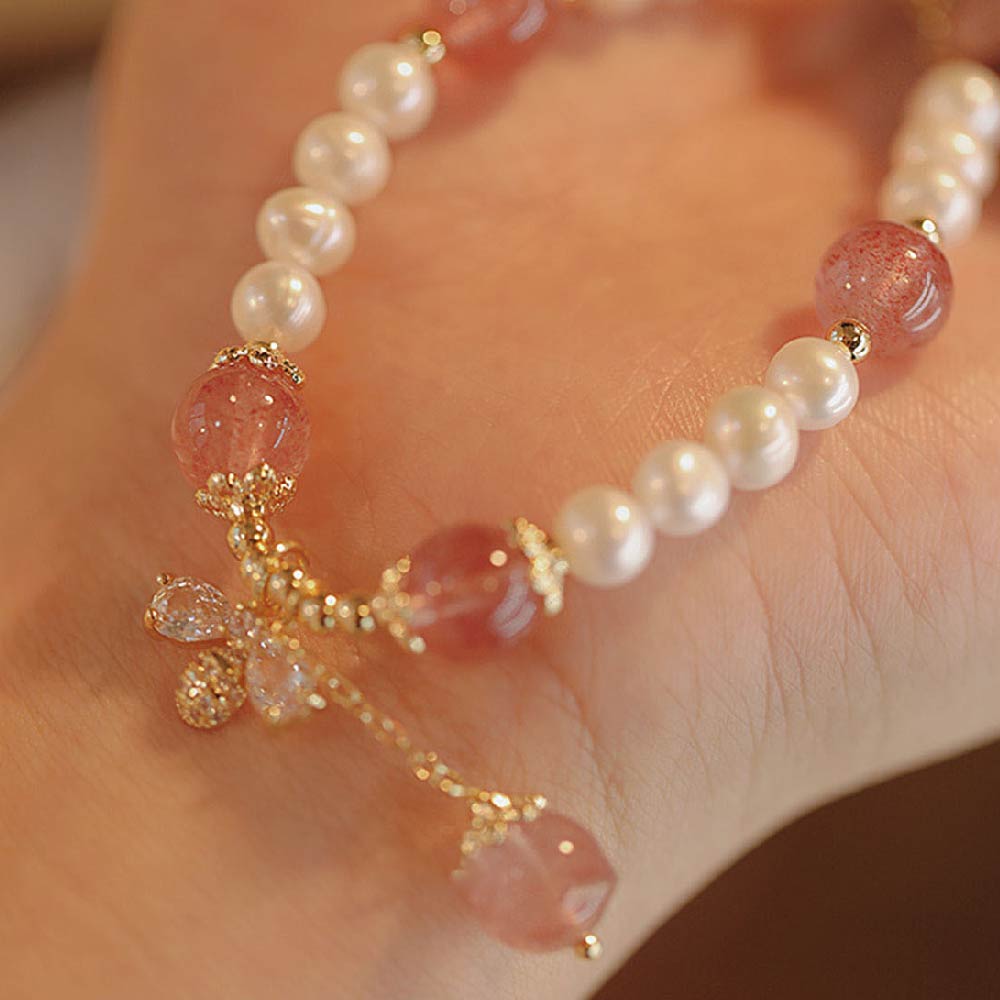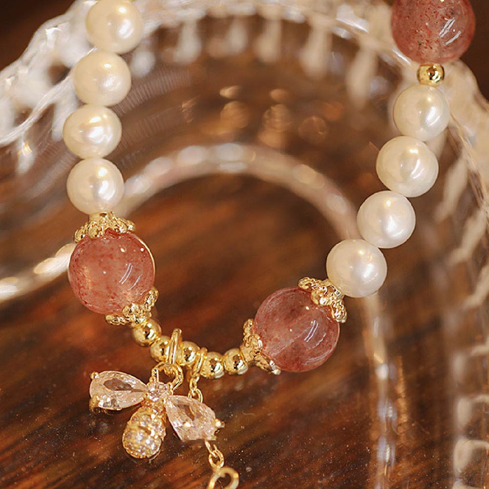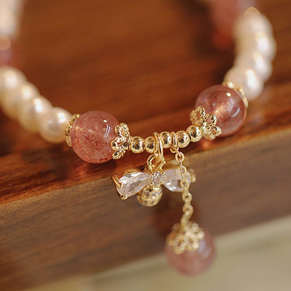 [開運 金運 仕事運 ] 天然石 ブレスレット 8MM ストロベリークォーツ 天然石ブレスレットパワース トーンブレスレッ スアクセサリー WRTA-BR-446