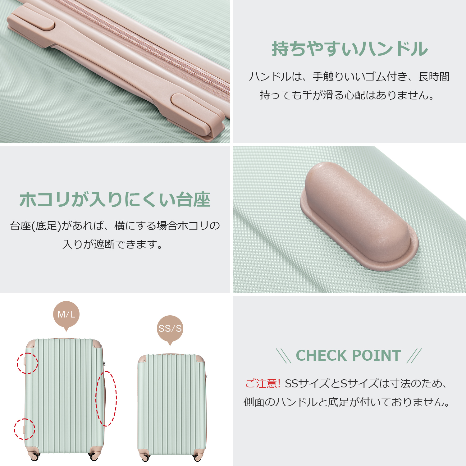 10.【ご注意】①内部ファスナーについて:ケース内部にあるファスナーはメンテナンス専用ファスナーとなります。修理が必要になった場合にのみ使用するファスナーのため、あえてファスナーのつまみが付いていません。お荷物を入れるものではありませんので、ご注意ください。②SSとSサイズは寸法のため、側面のハンドルと底足が付いておりません。予めご了承ください。③※掲数している写真は、ご使用のコンピューター及びスマホのモニターの種類によって、実際の商品のイメージと多少異なることがございます。予めこ了承ください。※ロットによって、製品の色は多少異なりますので、こ了承とこ理解の程よるしくお願いたします。