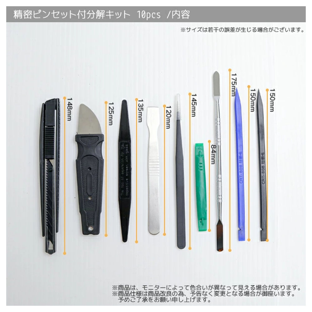 精密ピンセット付分解キット 10pcs 専用布ケース付 / スマホ タブレット 電子機器 分解 修理 A0655660