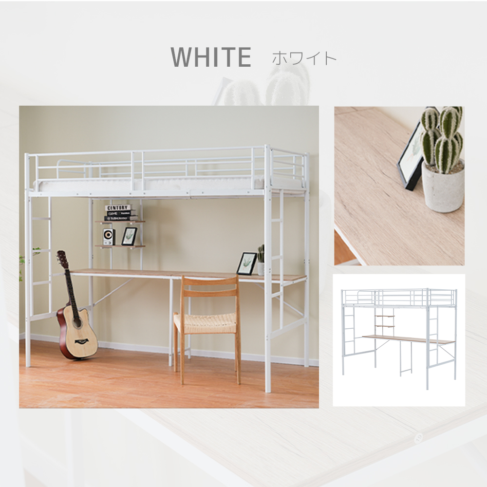 【省スペースのハシゴ】ハシゴはベッドフレームと一体に組み込まれ、圧迫感がなく、省スペースのデザイン。 ベッドの両側に配置されていて、左右どちらでも上がりやすい。 斜めに掛けるタイプのはしごよりスペースをとらない。