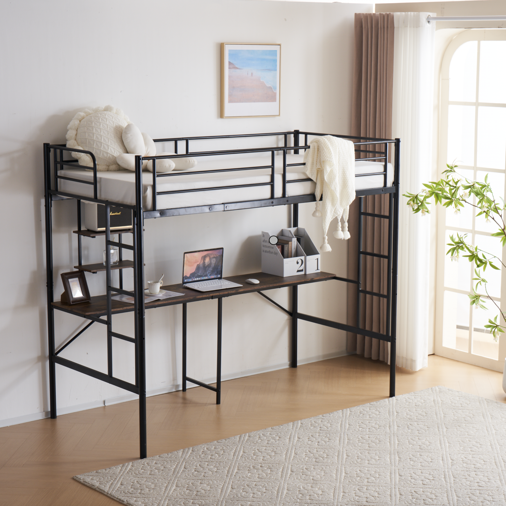 【ベッド下のデスク】ベッド下にはデスクを設計し、スペースを充分に使える。ベッドのフレームと調和するため、同じような色合いのウォールナットを選び、統一感ある視覚効果を与える。デスクの表面は広々としており、余裕な作業や学習スペースを提供できます。デスクの真ん中と両側にも長い支柱と補強クロスバーを設置され、三角の固定原理を応用し、デスクをしっかり支えます。耐荷重は60㎏、ご安心してお使いいただけます。