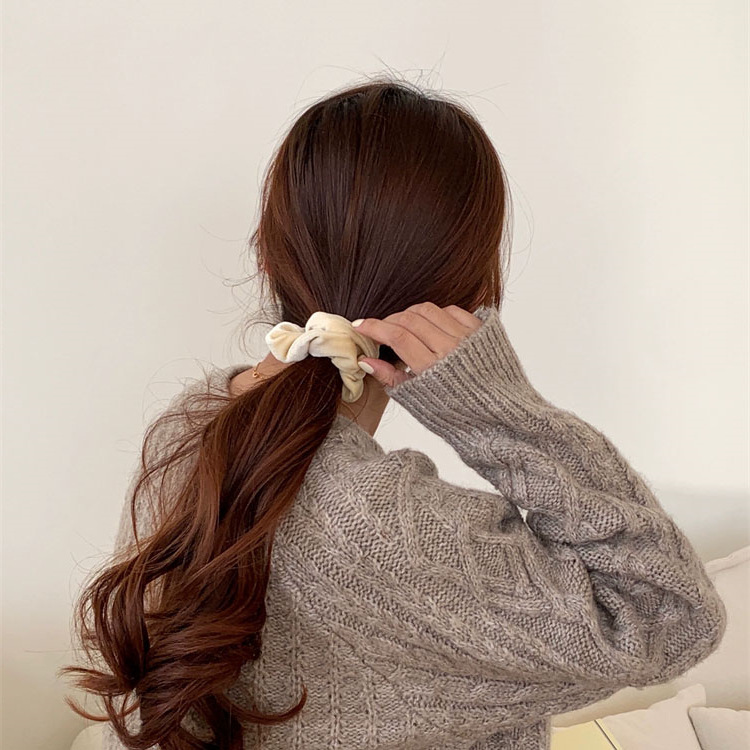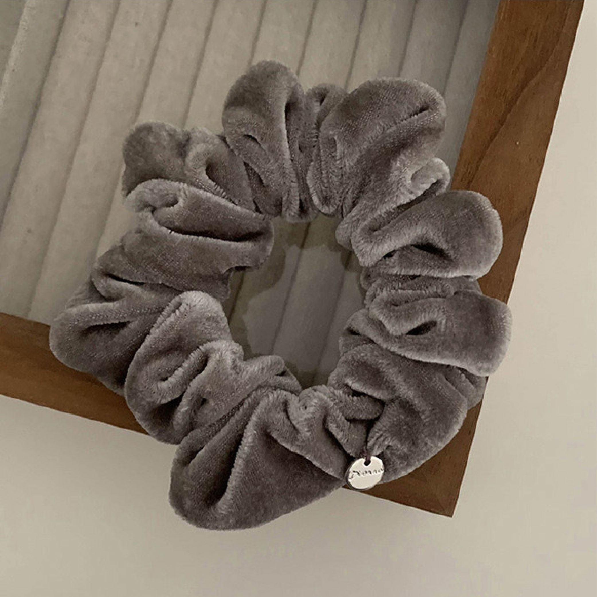 大人のアレンジに活躍する、シックなカラーリングのベロアシュシュ。程よいボリューム感でさっと簡単にまとめるだけでおしゃれな仕上がりに。しっかりとした生地感もポイントです♪