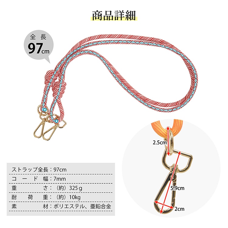 【サイズ】:ストラップ全長(約)97cm/コード幅(約)7mm