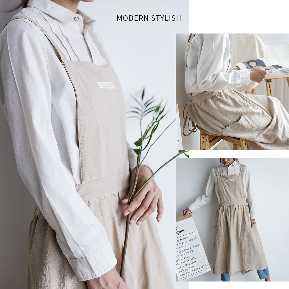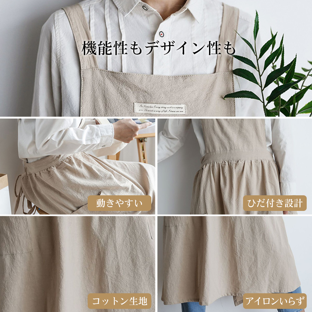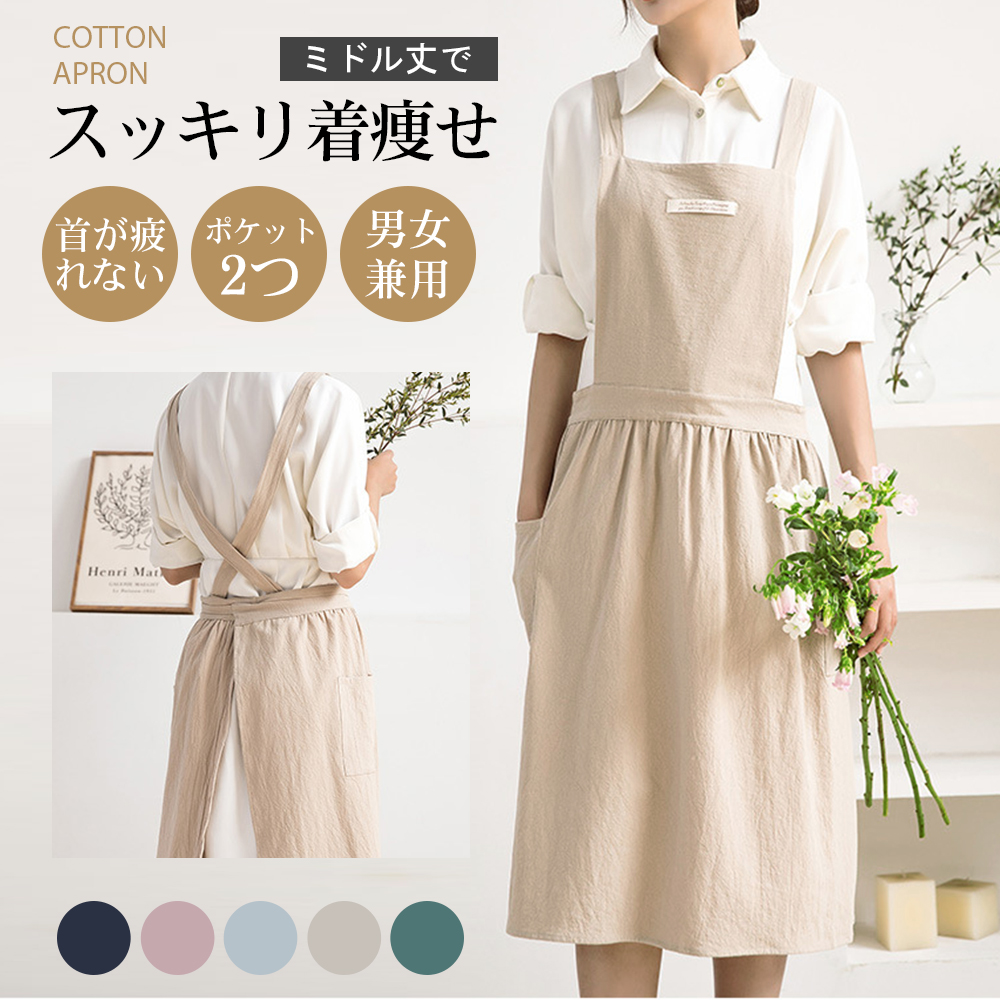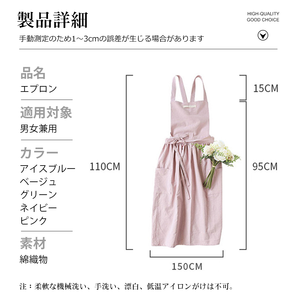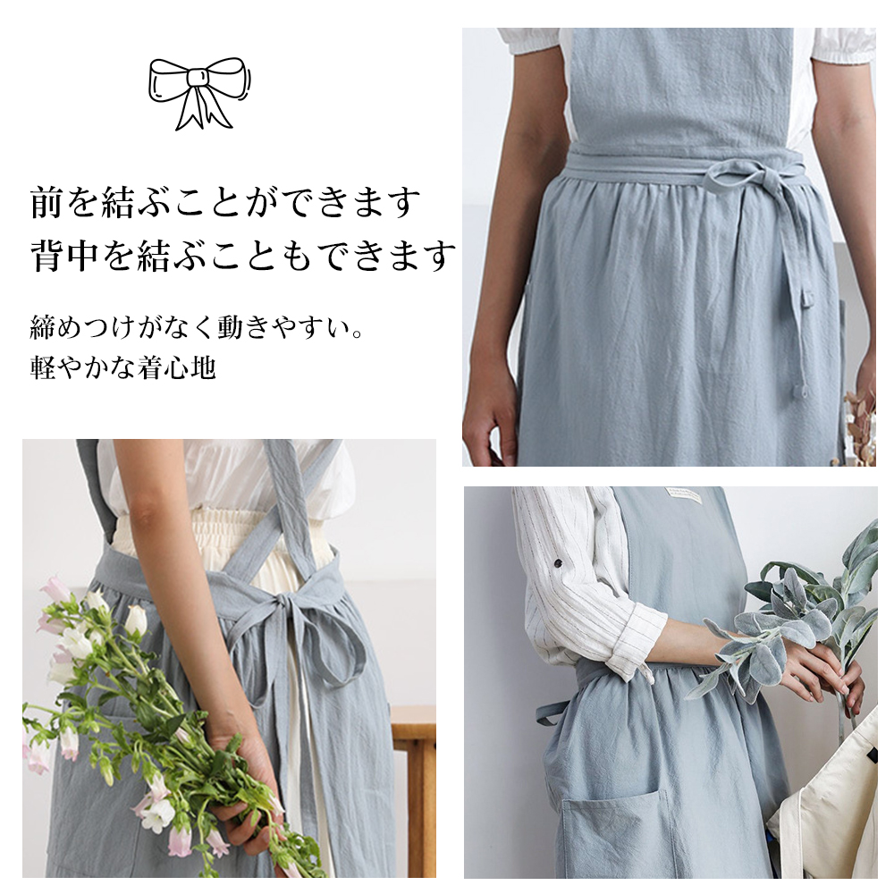 【高品質 リネン ロング丈エプロン】使うほどに味わい深くなり、麻特有のクタッとした質感がおしゃれ!すっきりとしたデザインで、細身の胸当てと首もとの曲線が女性らしく美しいエプロンです。 【幅広い用途に使えます】お 料理 や 掃除 などの 家事 、育児 の時間はもちろん、 ガーデニング 、 家庭菜園 のお手入れ、 料理教室 や、等の場面でも大活躍!カフェやお花屋さんなどの職場でもご利用いただけます。大切な方への プレゼント、母の日にもオススメです。 【衛生的、実用性にありエプロン リネン】吸水性、通気性に優れ、発散性もある為、キッチン仕事に最適です!汚れも落ちやすく、洗濯にも強いので衛生的にお使い頂けます。腰ひもにキッチンタオルを掛ける事も出来き、キッチン仕事がとてもスムーズなのも嬉しいポイントです! 【ポッケト付き、肩の紐で調節可能】首紐とポケットのタグがアクセントとして全体を引き締めます。お気に入りの一枚を持つことは、家事への取り組みを前向きにしてくれます。いつもの暮らしに彩りをプラスして楽しく家事をしませんか。 【注意事項】すでに水通しがされているので、洗濯後の収縮率も1%ほどです。 リネン特有の多少の織りキズ、ネップ、節、繊維片などが含まれる場合もございますが、天然素材の自然な風合いとしてあらかじめご了承願います。
