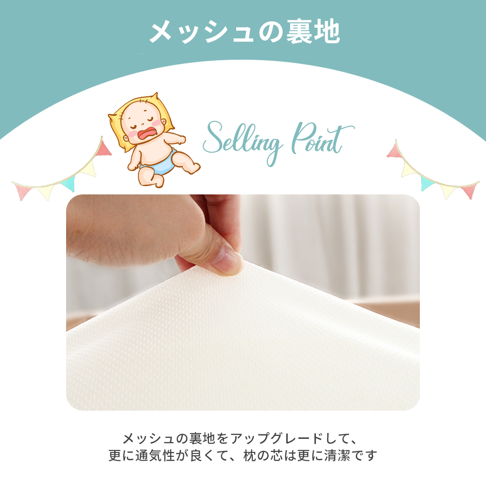 【メンテナンスのしやすさ】赤ちゃんの世話をする親をサポートし、当社のベビーピローは手入れが簡単なピローカバーを設計しています。カバーは簡単に取り外し可能で、洗濯機で洗うことができ、清潔で衛生的な状態を保ちます。これにより、赤ちゃんの健康を維持するだけでなく、親の負担を軽減し、赤ちゃんが最高の睡眠環境で成長できることを確保します。