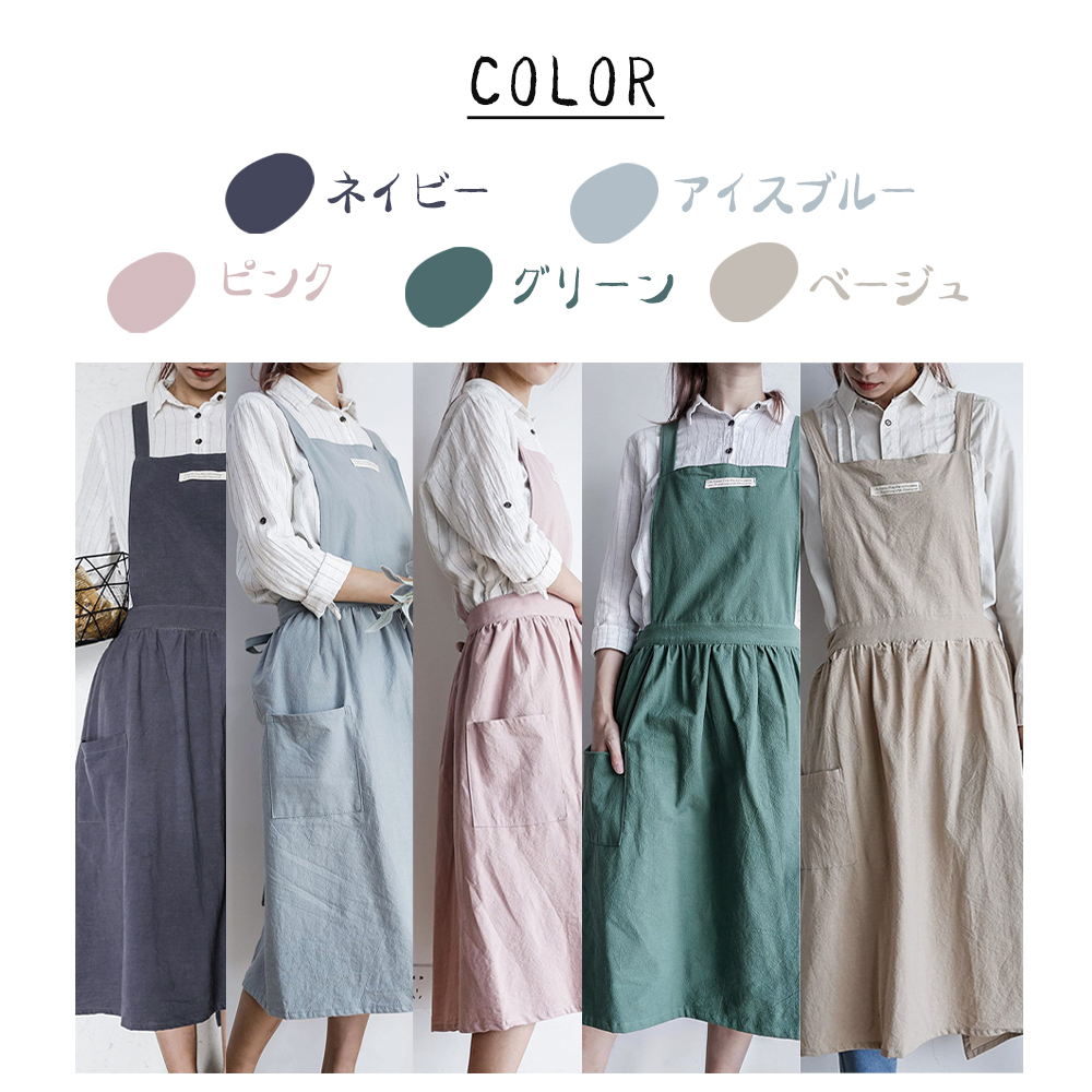 エプロン おしゃれ 保育士 かわいい ワンピース 大きいサイズ 北欧 カフェ 保育士 シンプル ナチュラル 無地 ユニフォーム コットン 綿麻 習い事 家事 料理教室 カフェ レストラン 母の日 C-03