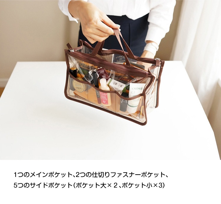 ■小物を整理整頓のできる透明なバックです。コスメポーチや、アメニティいれとしても活用いただけます。