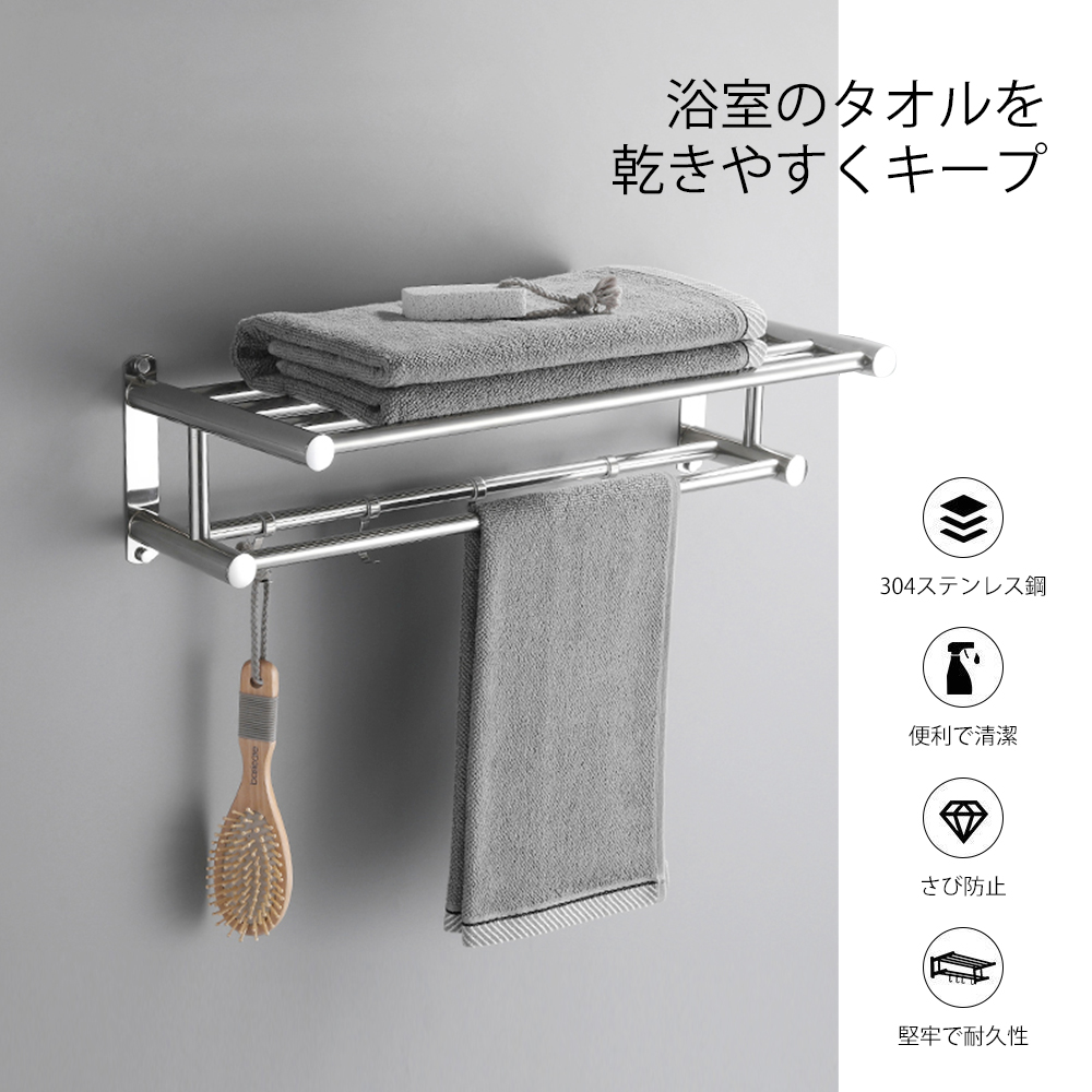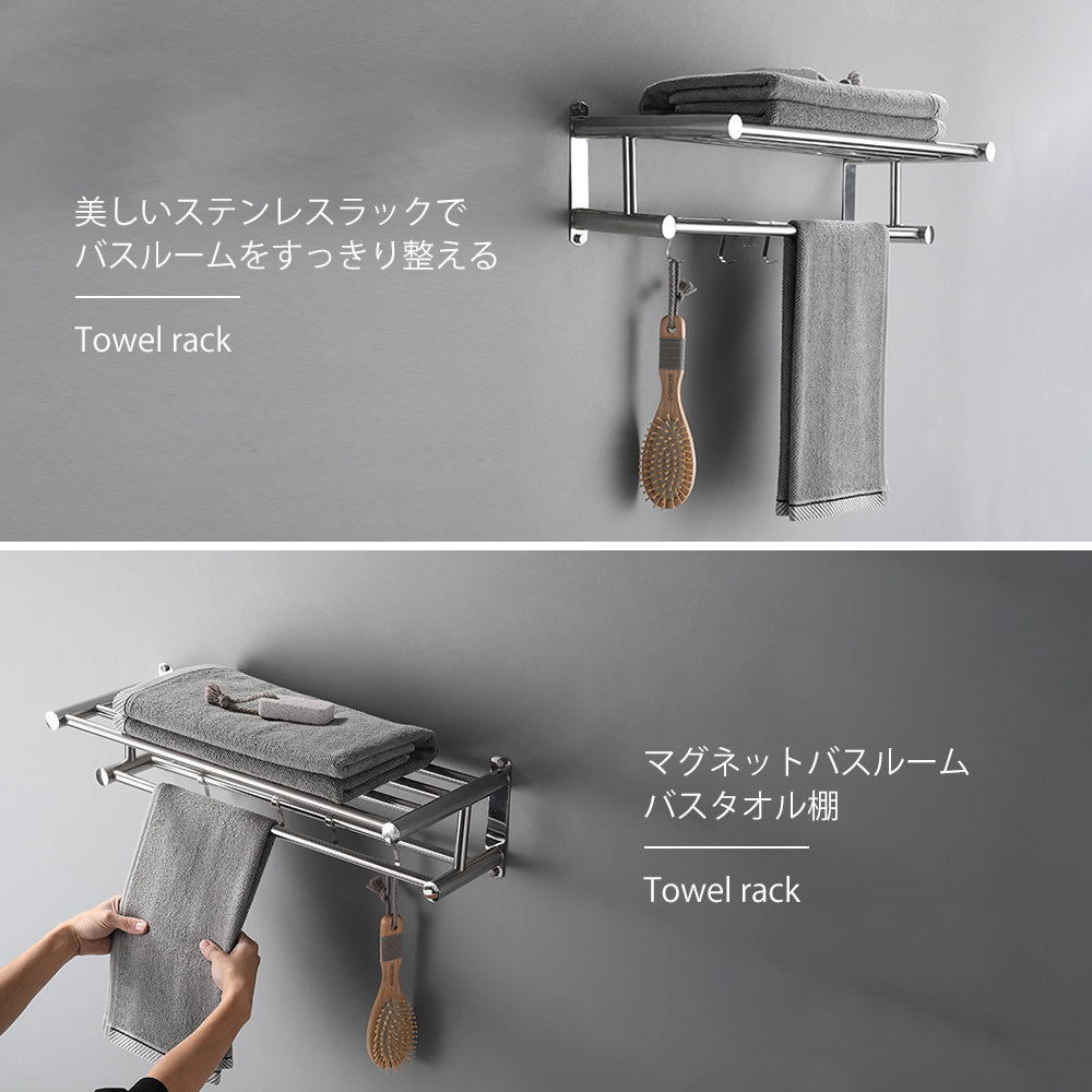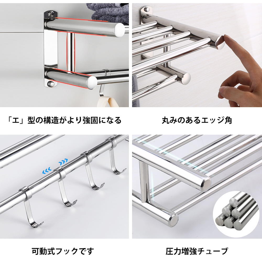 【外観】: 2層 のタオルレール、自由に動くフック、シンプルで実用的で。 接着剤で製品を貼り付けることもできますし、穴を開けて設置することもできます。 穴のない設置方法を使用して壁を効果的に損傷から保護します。