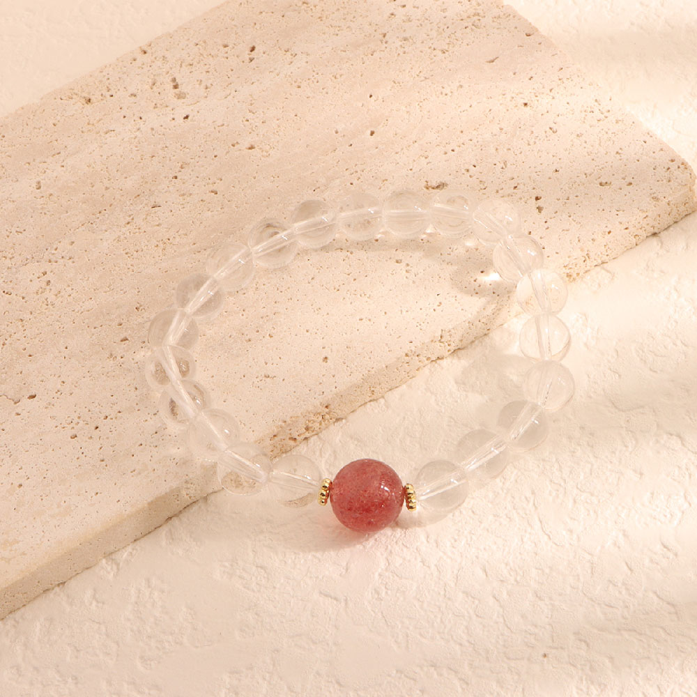 [開運 金運 仕事運 ] 天然石 ブレスレット 8MM ストロベリークォーツ 天然石ブレスレットパワース トーンブレスレッ スアクセサリー WRTA-BR-412