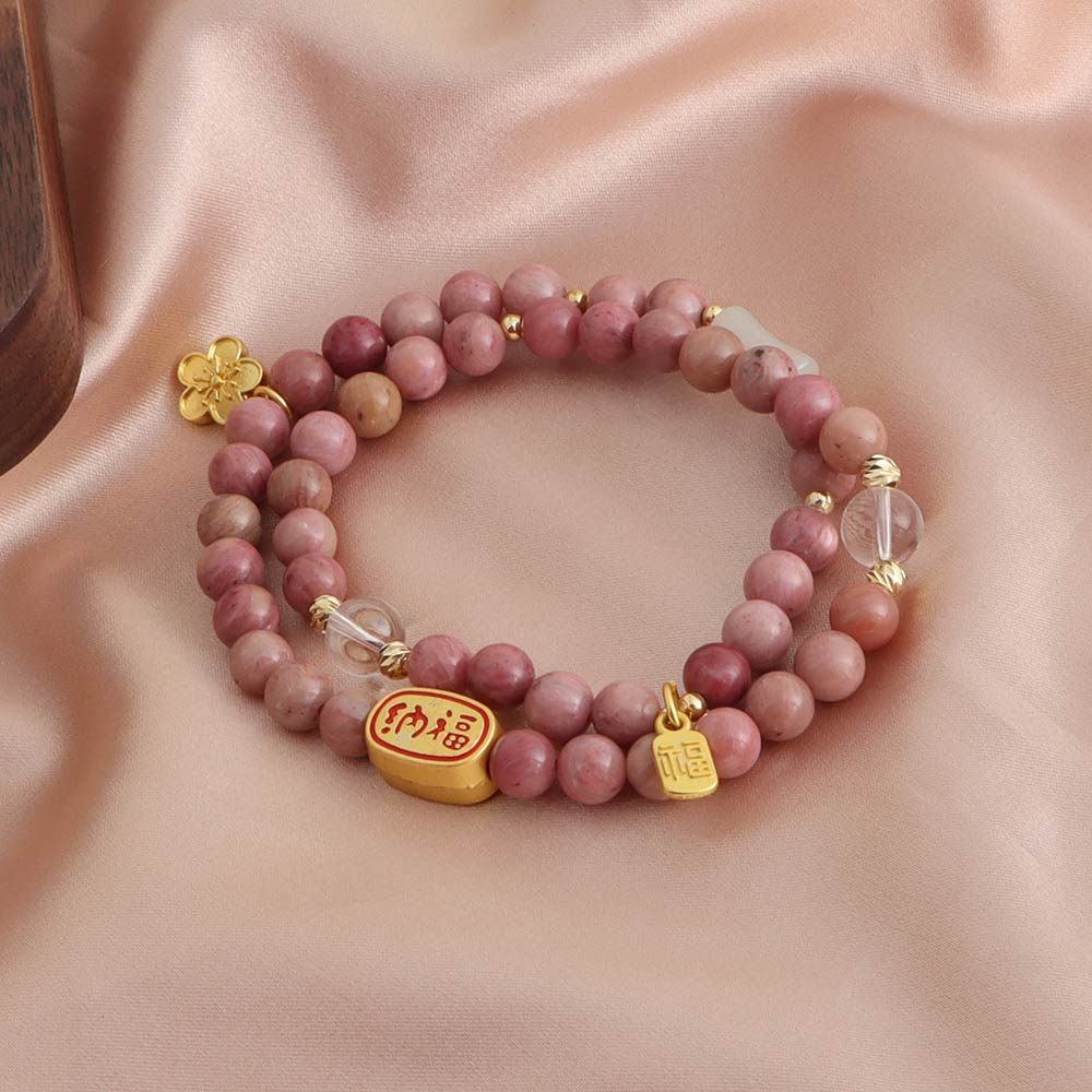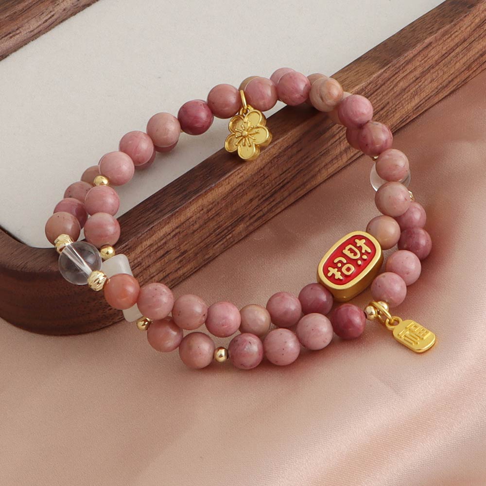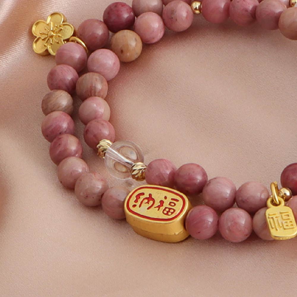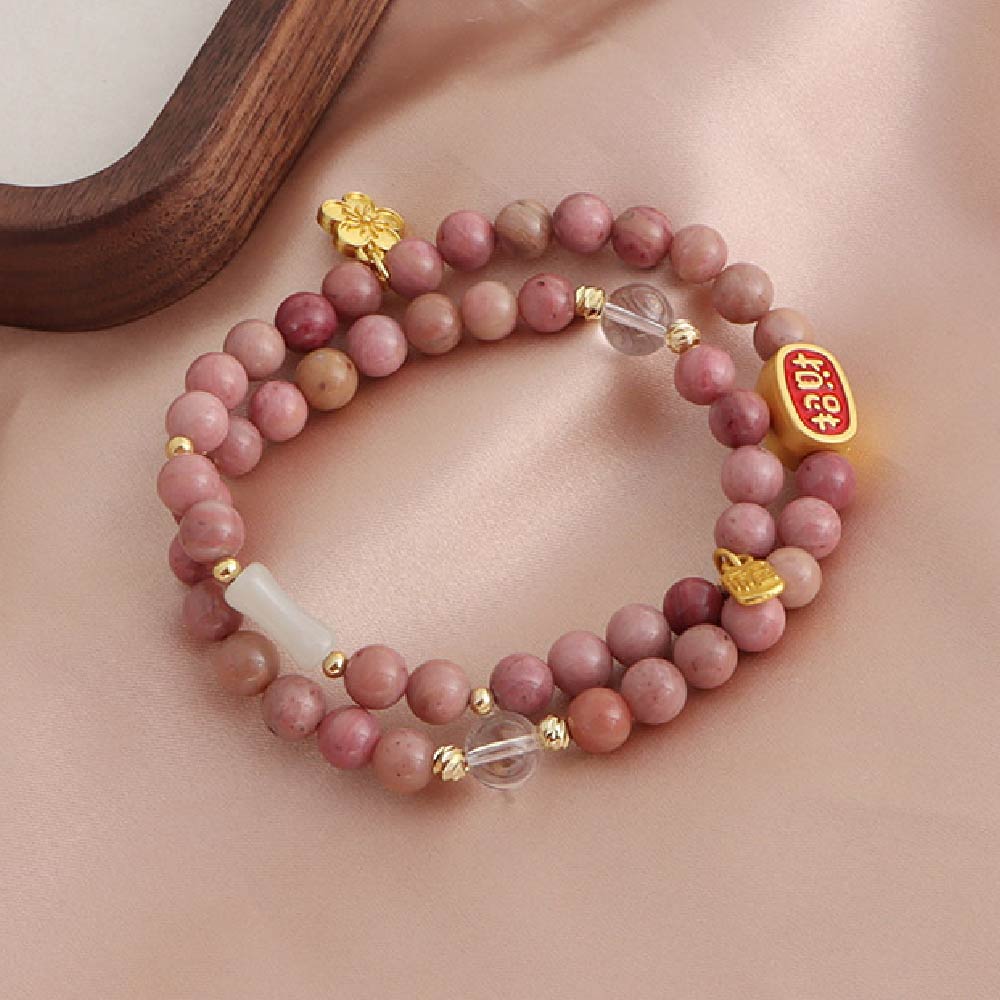 [開運 金運 仕事運 ] 天然石 ブレスレット 6MM ストロベリークォーツ 天然石ブレスレットパワース トーンブレスレッ スアクセサリー WRTA-BR-494