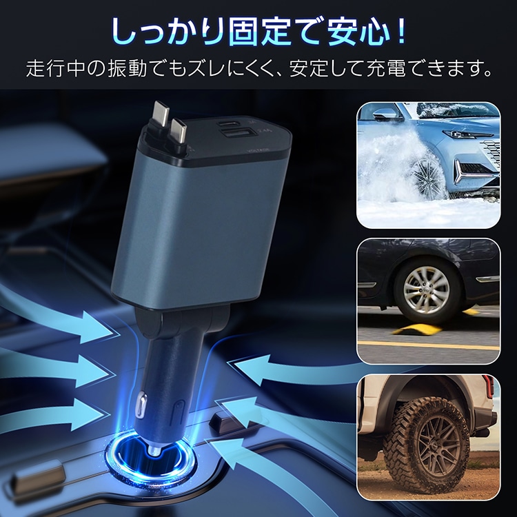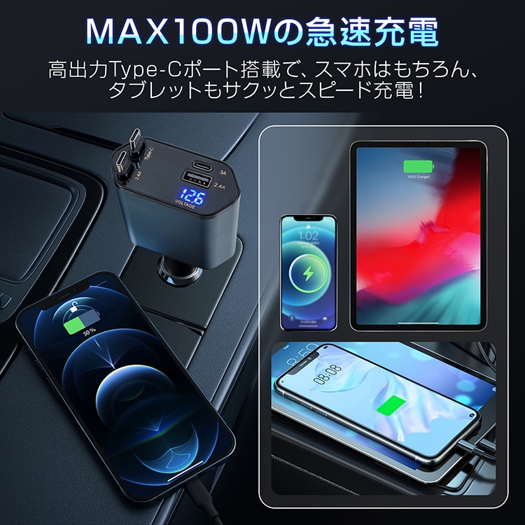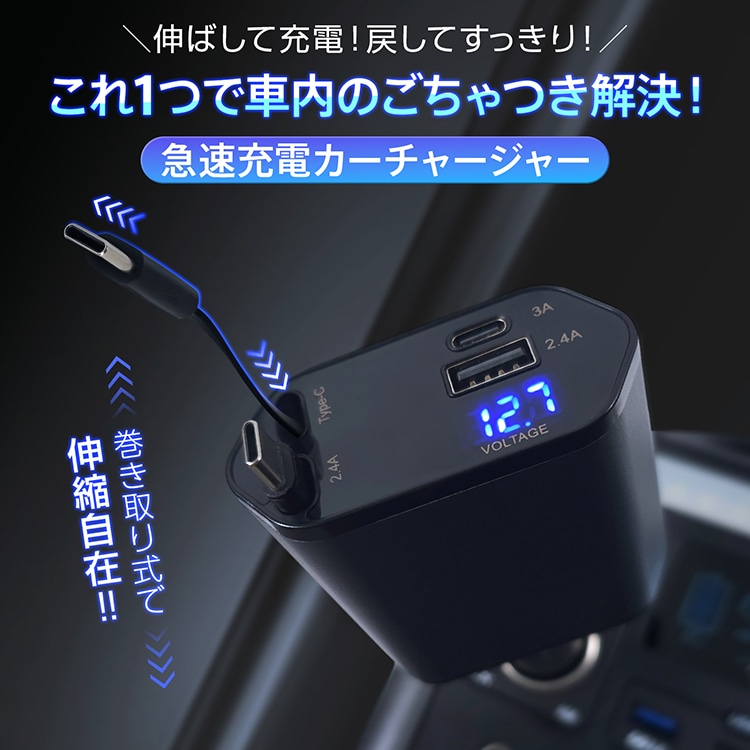 ■伸ばして充電、戻してスッキリ!車内のごちゃつきをこれ1つで解消!