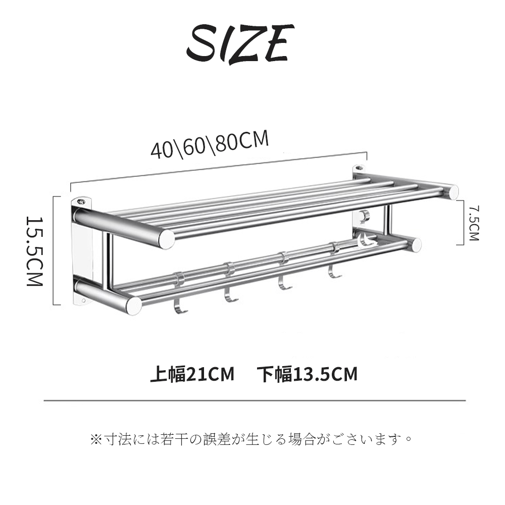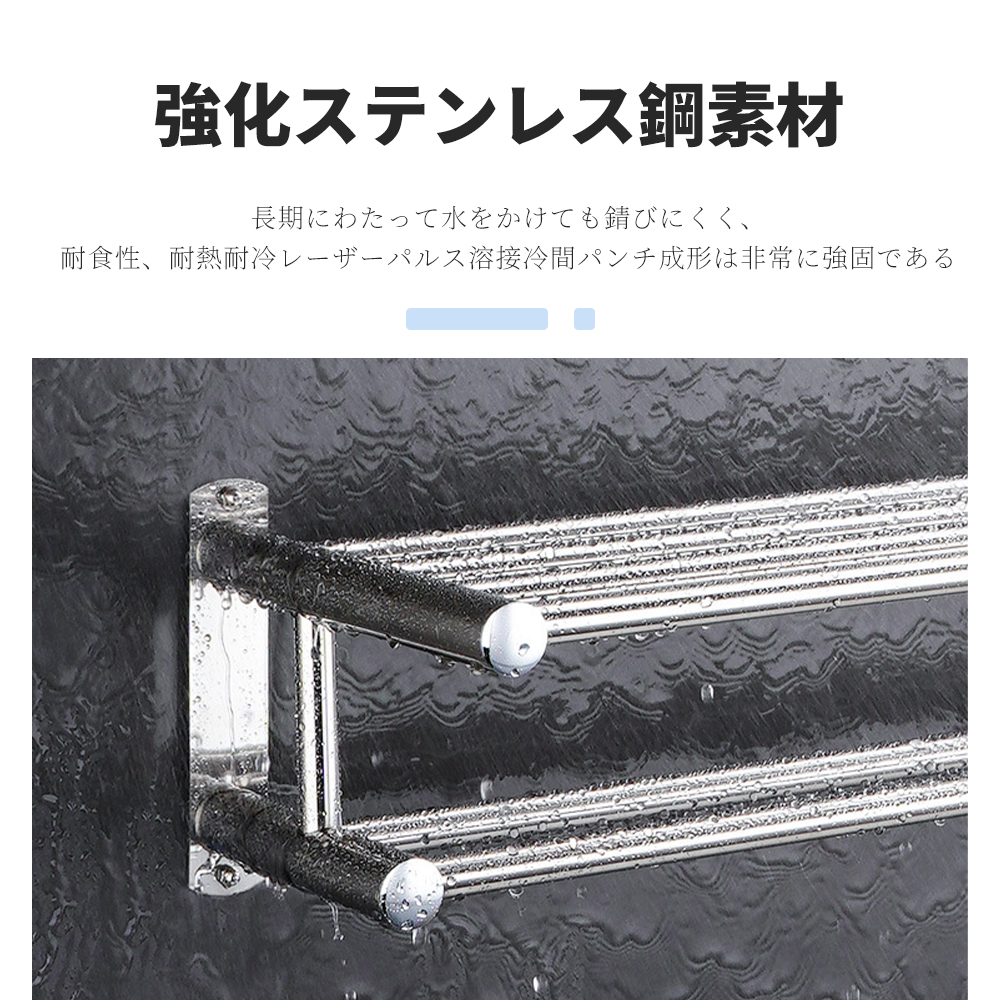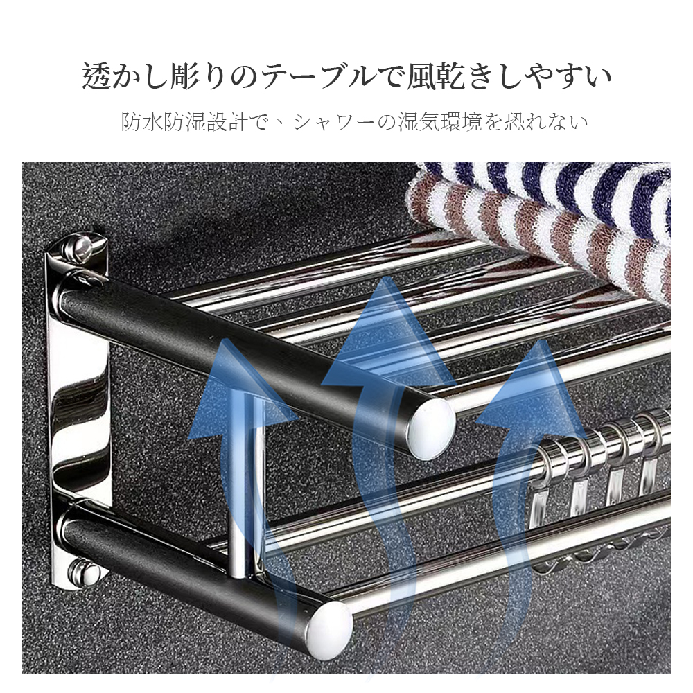 【外観】: 2層 のタオルレール、自由に動くフック、シンプルで実用的で。 接着剤で製品を貼り付けることもできますし、穴を開けて設置することもできます。 穴のない設置方法を使用して壁を効果的に損傷から保護します。