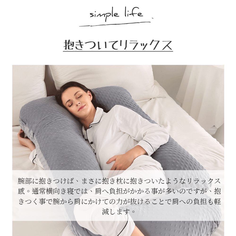 ※体の全面をカバーする形に包み込むG字型で、横向きはもちろん仰向けでもOK!