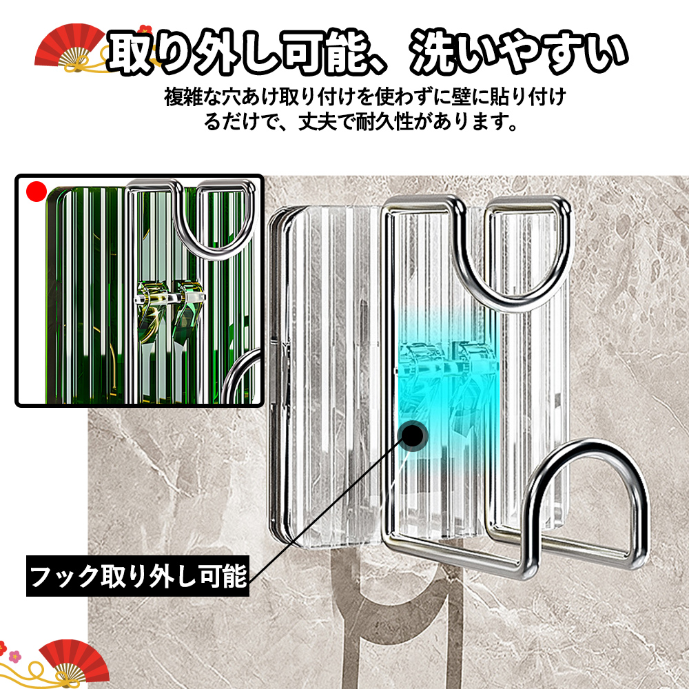 【取付け簡単】シールで貼るだけ!工具不要の簡単取付けです。タイル、大理石、ステンレス等なめらかな壁面に取付け出来ます。ご注意:取付け箇所は、水滴、油汚れ等を十分に拭き取ってから取り付けて下さい。