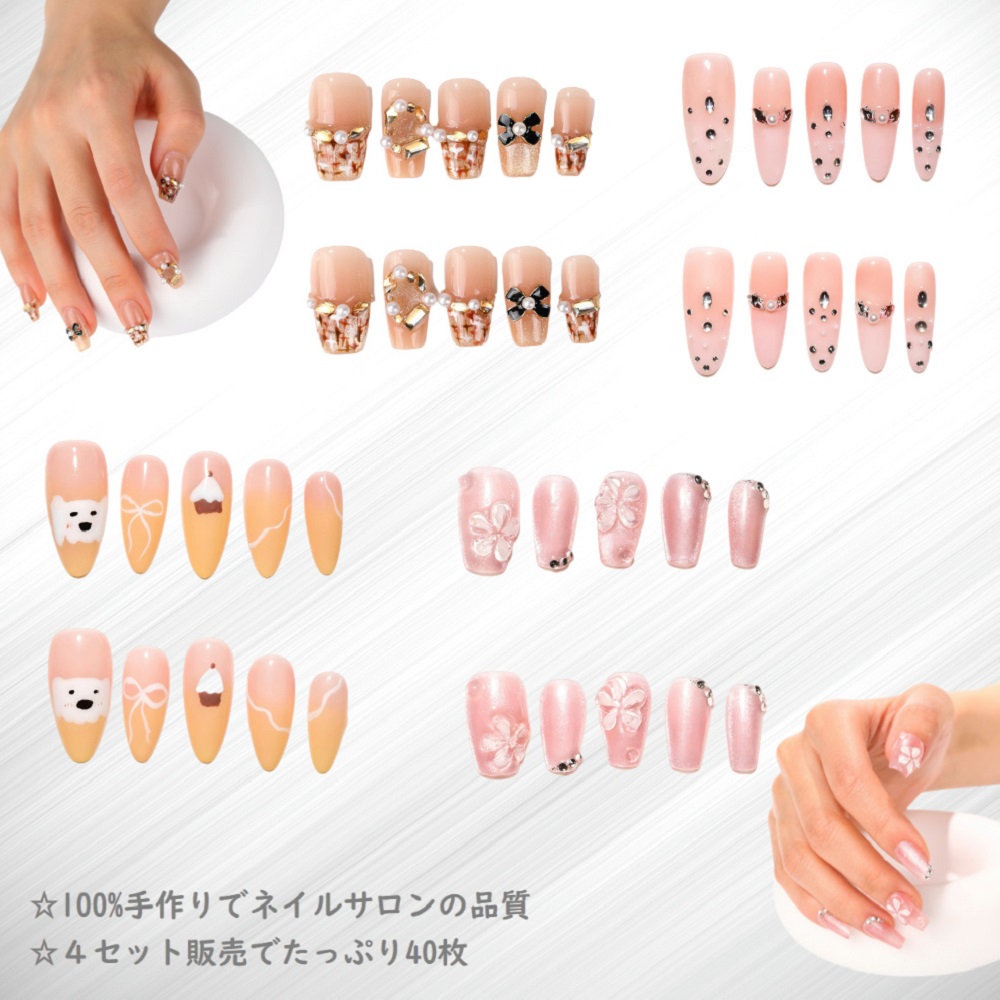 アクセサリー ·ジュエリーネイルチップ 4個セット 秋冬 ネイルチップ 人気 和風 かわいい シンプル 人気 女性おしゃれな 上級 成人式 入学式 卒業式 結婚式 パーティー 日常生活 花嫁ネイル 光沢 つけ爪 MJP-01