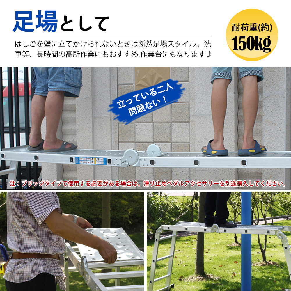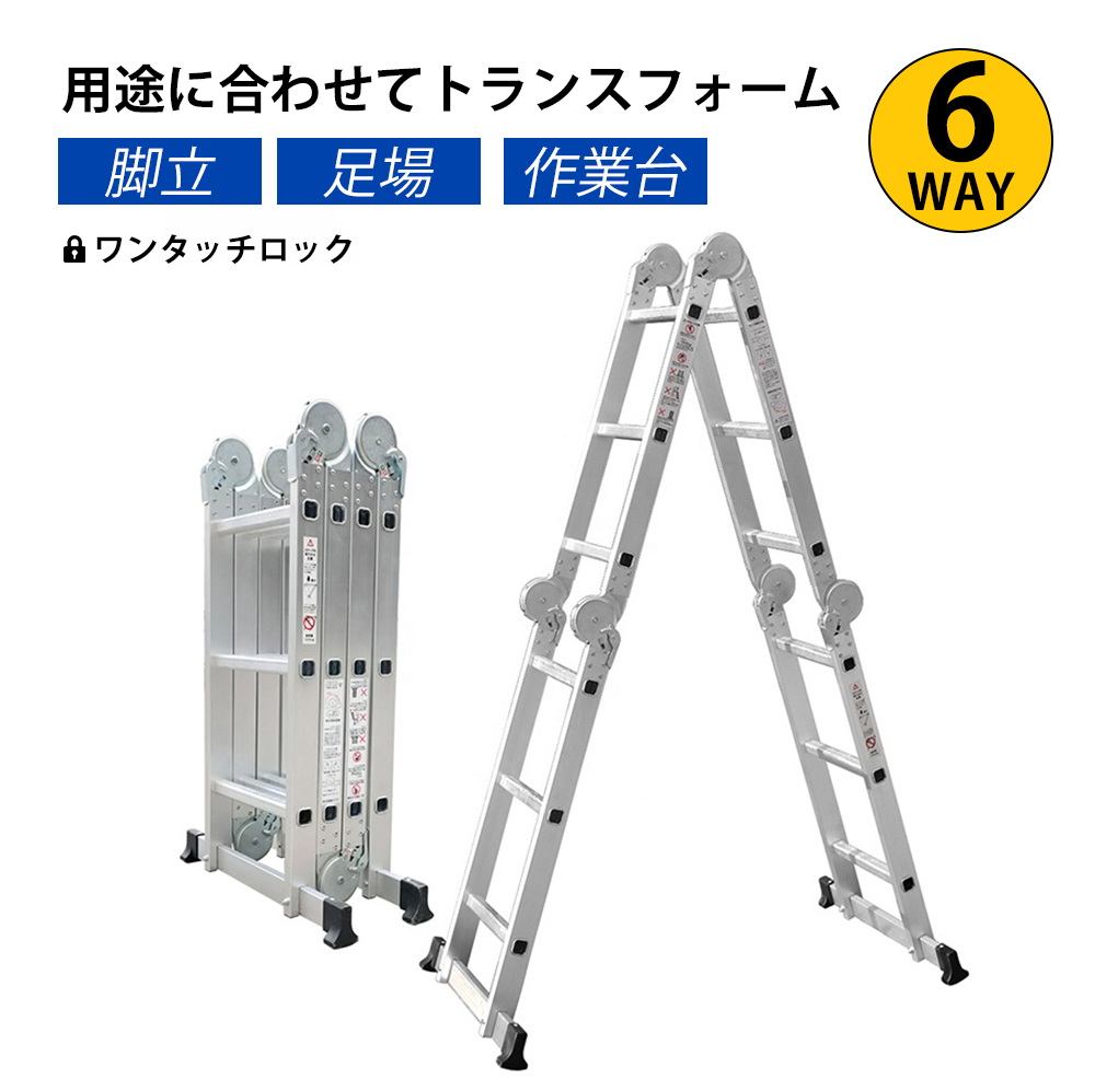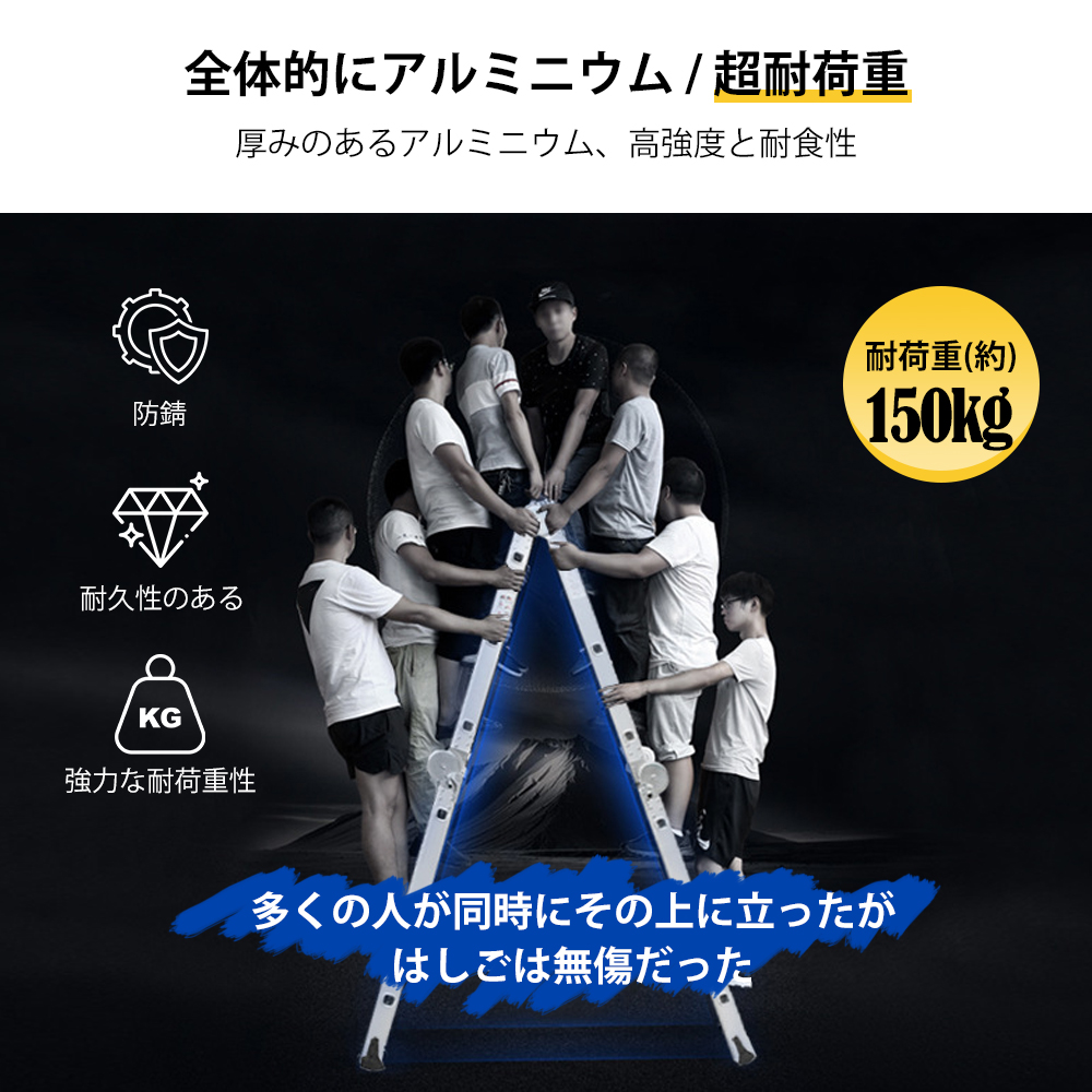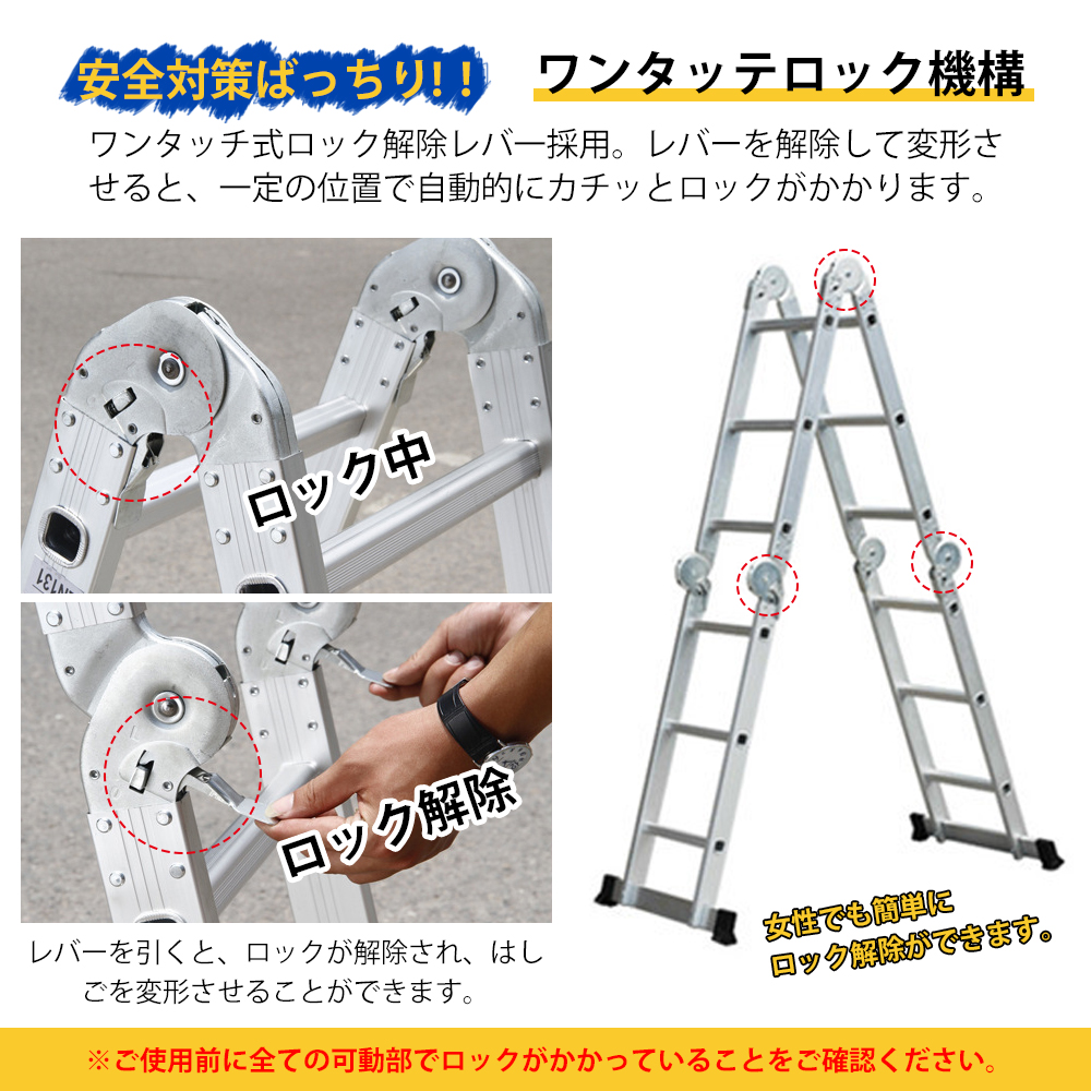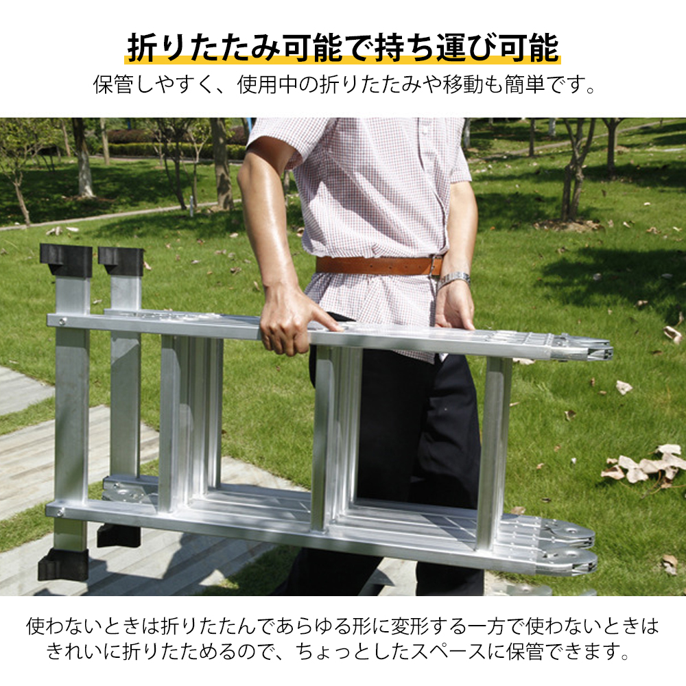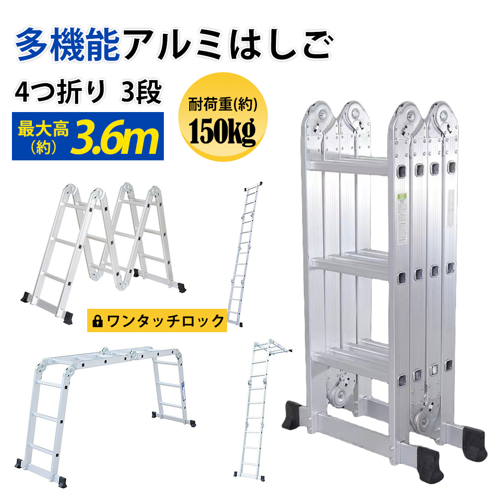 アルミ製なので軽量、しかも小さく折り畳めるので車や倉庫に積みこみやすいです。
