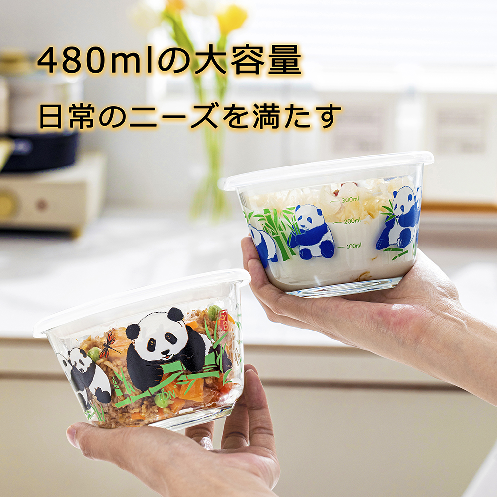 特定の数量の Panda 耐熱ガラス容器を入手できます – 3 * 保存容器(480ml)、3 * 蓋、3 * 立体 コースター シリコーン製(白)、パンダ 耐熱容器を積み重ねてスペースを節約できます。