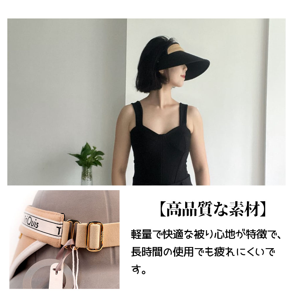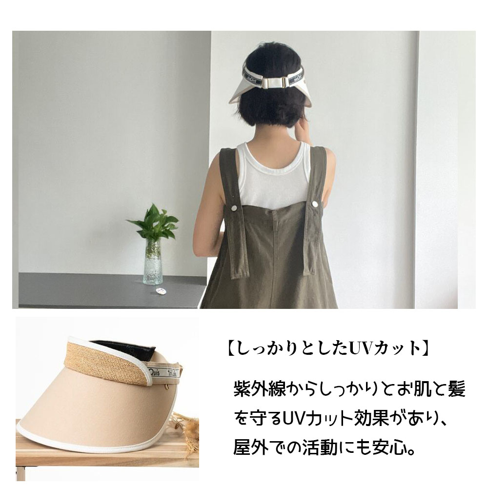 おしゃべりなバイザー 高品質ラフィア帽子 レディース ベージュ UVカット 紫外線対策 日除け 小顔効果 マダガスカル天然草使用 旅行用 WBGYCUI-03