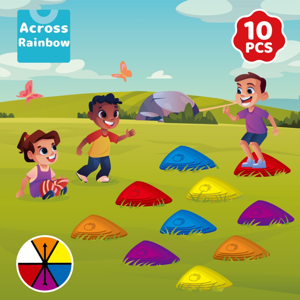 Across Rainbow バランスストーン10PCS キッズアウトドア 玩具 平均台 遊具 2~10歳 耐荷重量68KG/PCS 室内 室外兼用【幼稚園/教育施設/家庭ゲーム】バランス感覚/体幹/運動不足解消/STEM ) B0D397YCFN