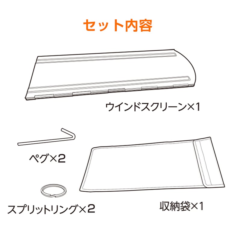 【商品内容】:大型風防板/収納袋/固定用リング×2/ペグ×2