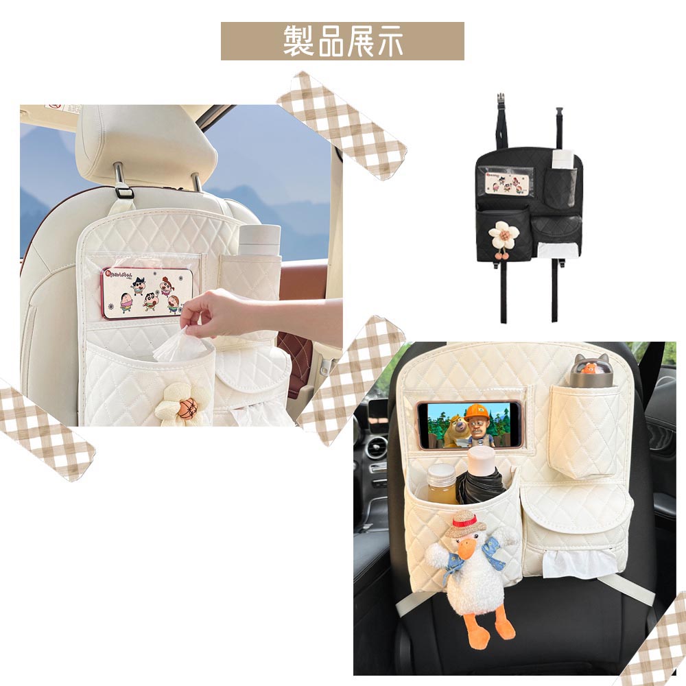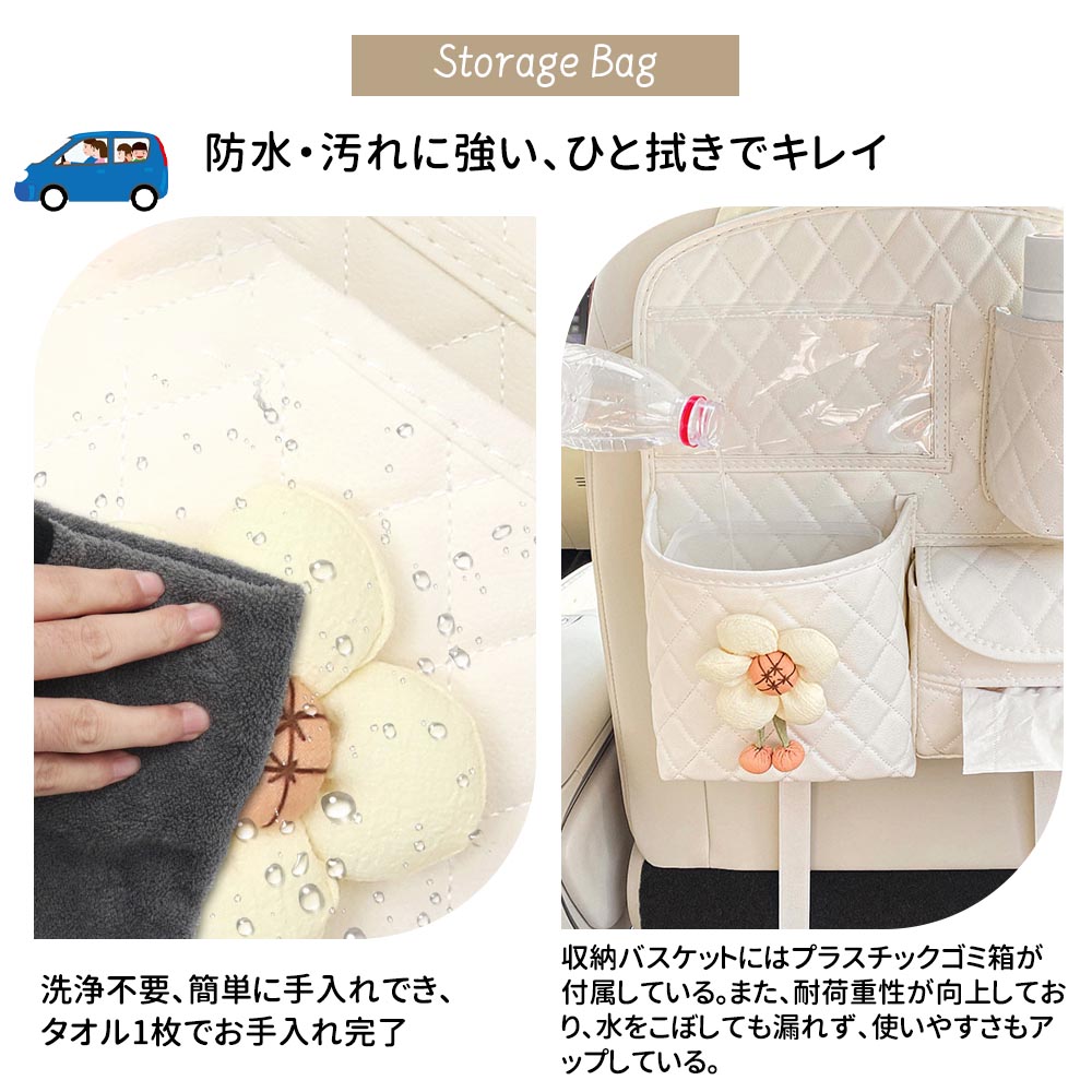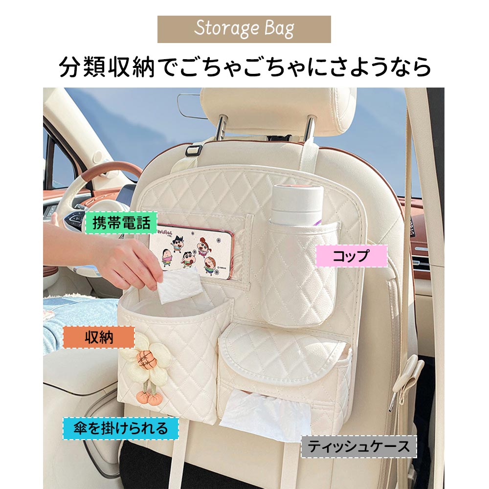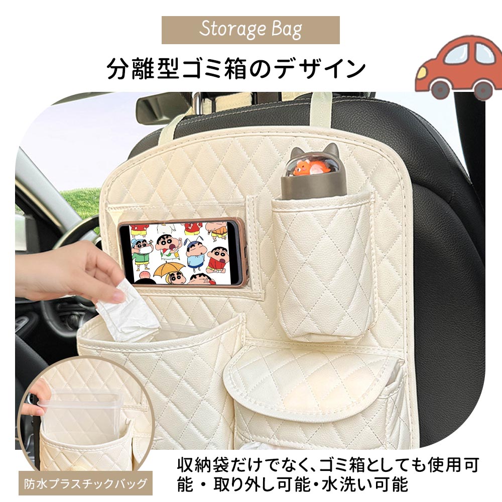 【大容量】多様化するストレージニーズに応える2種類のシートバックポケット。水筒、スナック、おもちゃ、傘、飲み物、クレヨン、本、ペン、雑誌、iPad、電話、充電器、ティッシュボックス、鍵、ぬいぐるみ、CDなどを便利に保管できる合計14個の収納ポケットがあります。日常の必需品や長い旅に使えるほとんどのものを収納する事ができます。